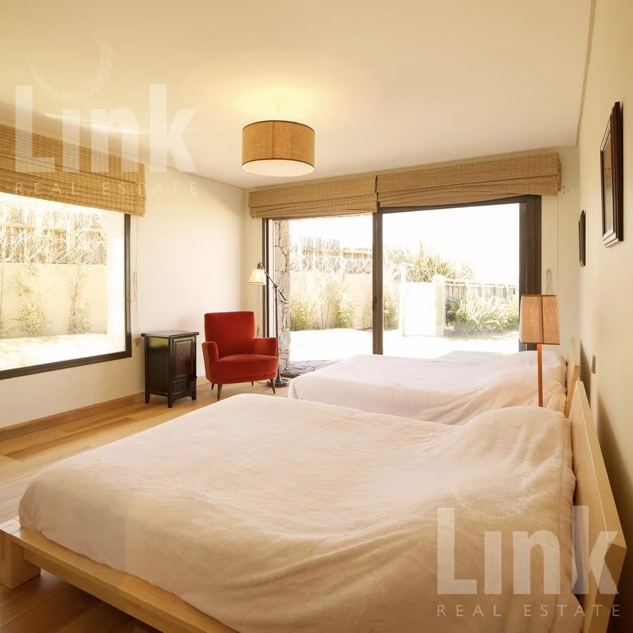 En planta baja se encuentran los espacios mas privados (3 dormitorios en suite, playroom, cocina). Todos con amplios ventanales, que permiten salir directamente a el jardín.