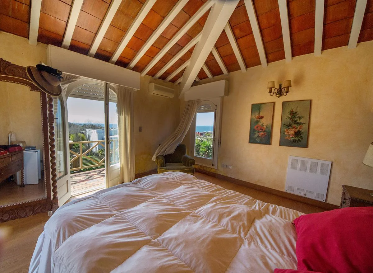 Hall de recepción, amplio living con hogar a leña y grandes ventanales que integran una gran galería que integra la barbacoa y el área de piscina. Comedor principal y toilette. Magnífica sala de juegos con bar. Amplia cocina con desayunador, dependencia de servicio y lavadero. En el 1er nivel hay 2 suites, una de ellas con vestidor y la otra con balcón con vista directa al mar. En el 2do nivel otras 2 suites de muy buenas dimensiones.