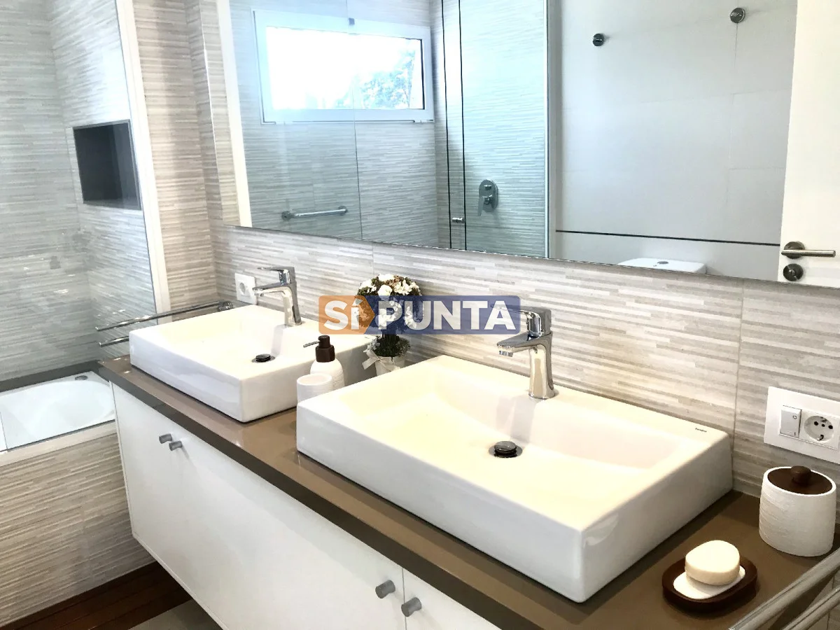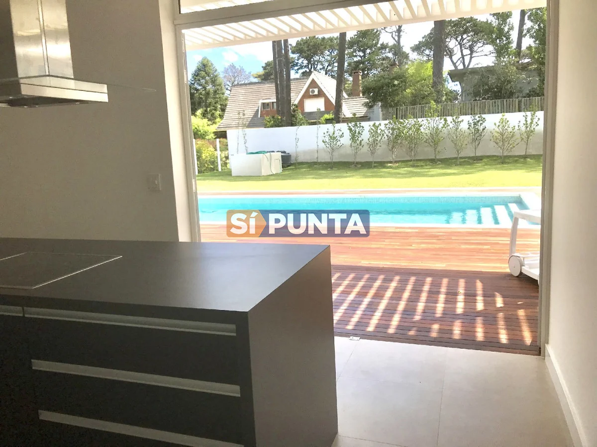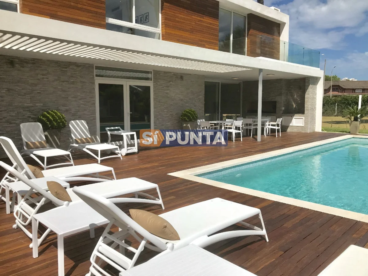 Hermosa casa ubicada dentro de exclusivo barrio privado de Punta del Este. Diseño elegante y moderno desarrollado en dos niveles. Se implanta en un predio de 880 m2 donde predomina un entorno verde y tranquilo. Parrillero techado, pérgola exterior y solárium, piscina climatizada. Comodidades: - Living - Estufa a leña - Comedor - Cocina - 4 Dormitorios (4 suites) - 4 Baños - Dependencia de servicio - Hermoso jardín - Piscina climatizada - Parrillero techado - Garaje para 2 autos Referencia Interna : Tera-2677