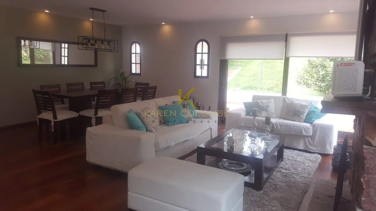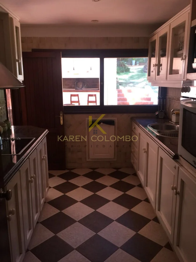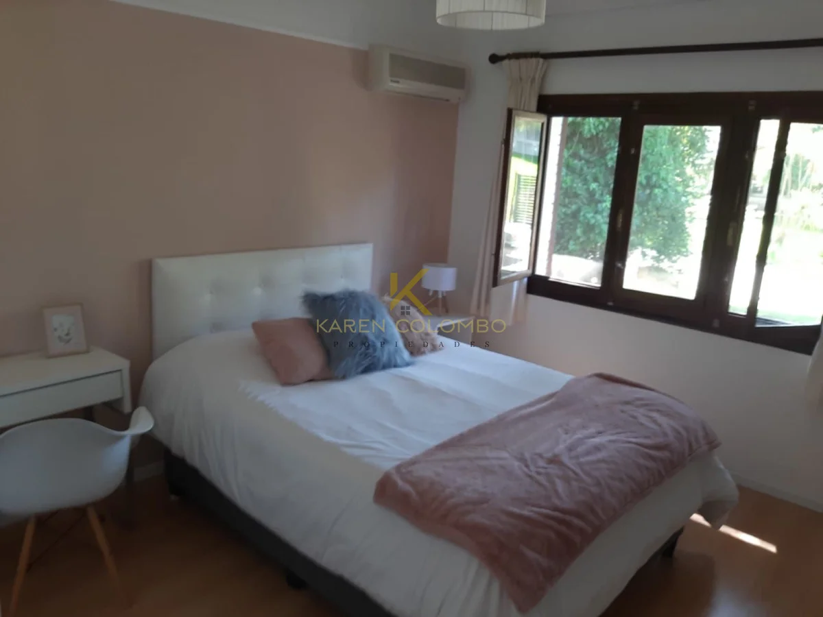 3 dormitorios, 3 baños, amplio living comedor con estufa a leña, cocina definida, parrillero techado, dependencia de servicio con baño, deposito, amplio jardín con piscina. Garage.