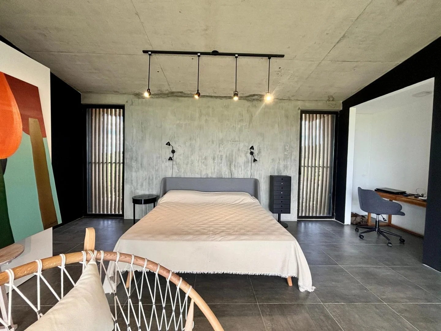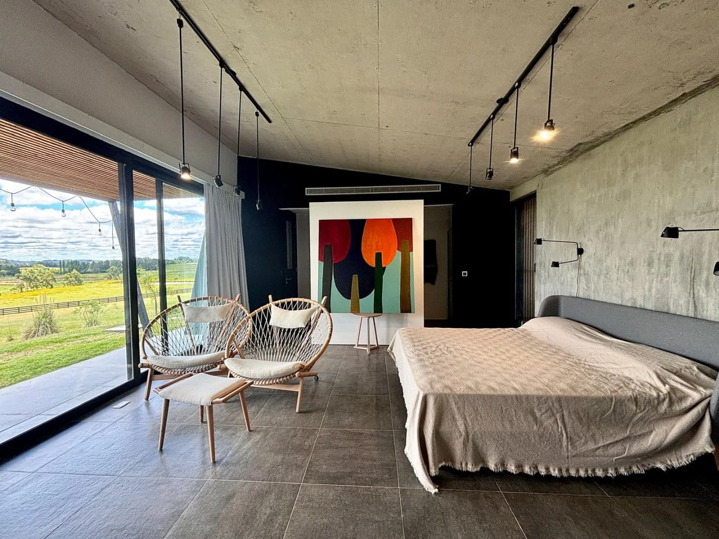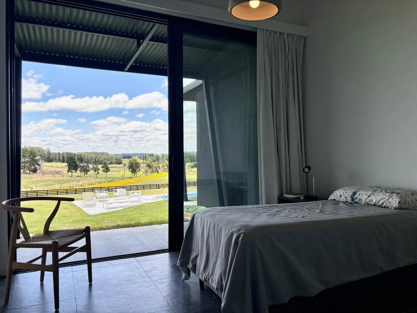 Hacia el otro extremo de la casa, esta la master suite con baño semi integrado, vista impresionante al campo y viñedos que estan en la zona, terraza propia.