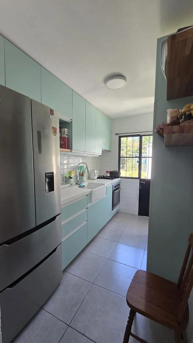 La cocina es definida y cuenta con muebles aéreos y bajo mesada. Dos dormitorios con placares. Baño completo.