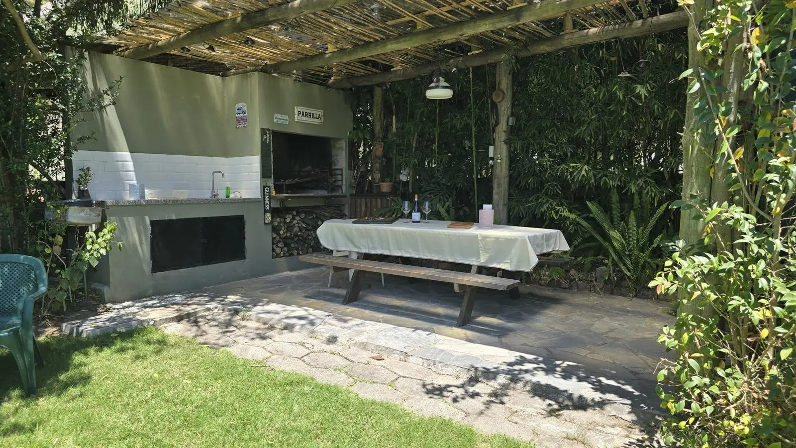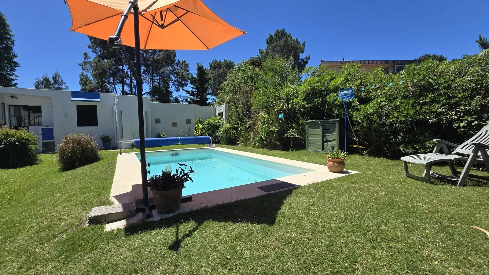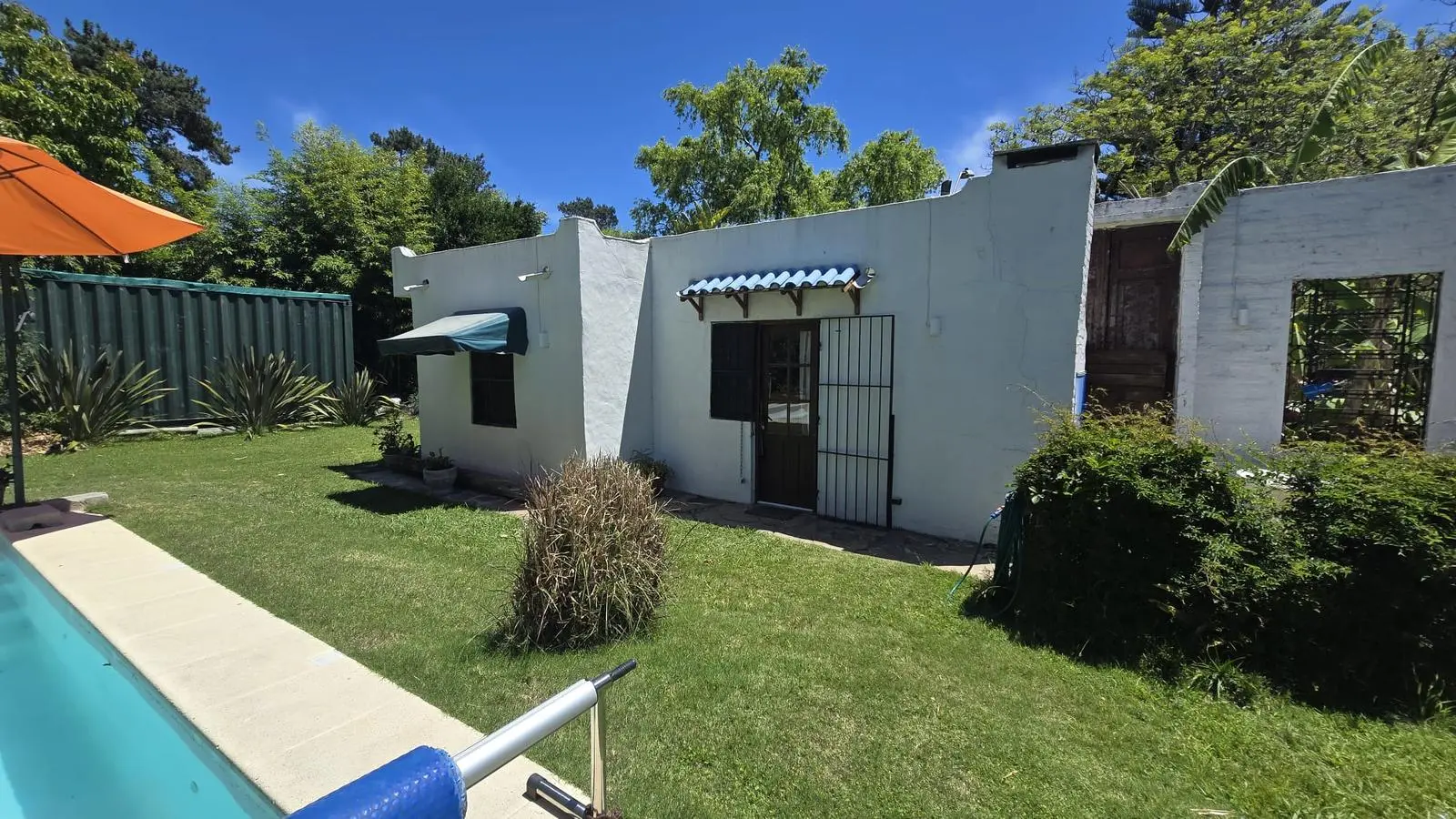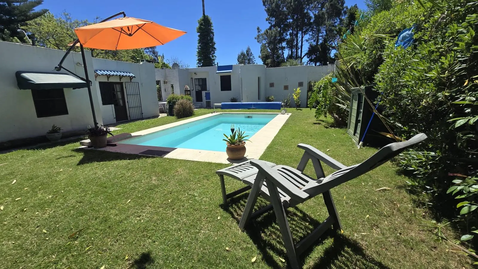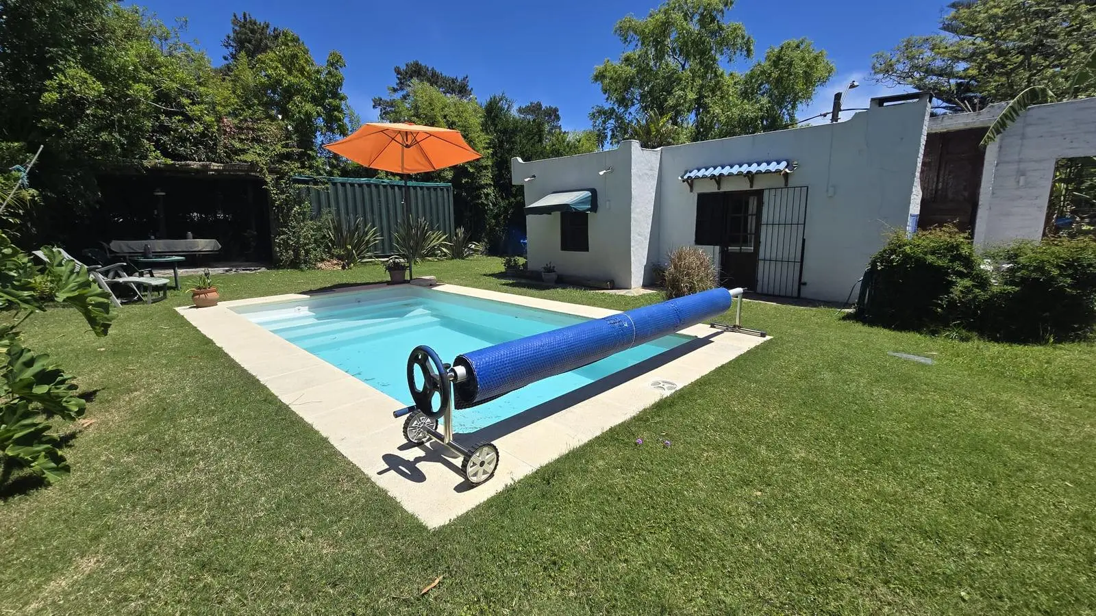 Gran fondo verde sumamente disfrutable con una gran piscina. Cuenta con una barbacoa con parrillero, leñero, mesada y bacha.