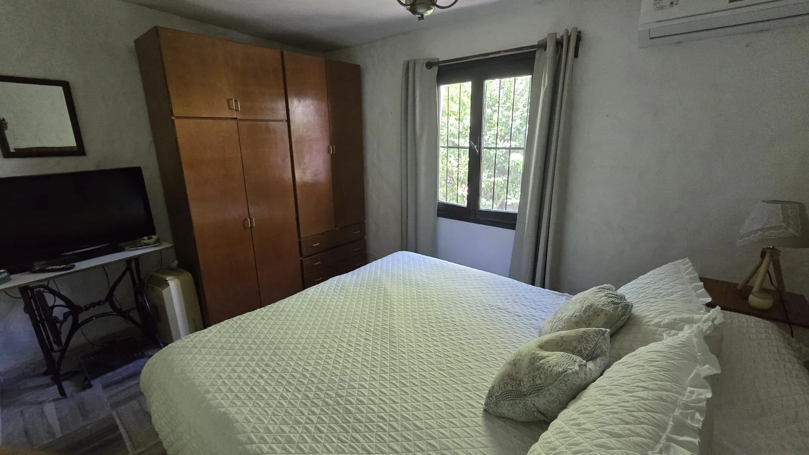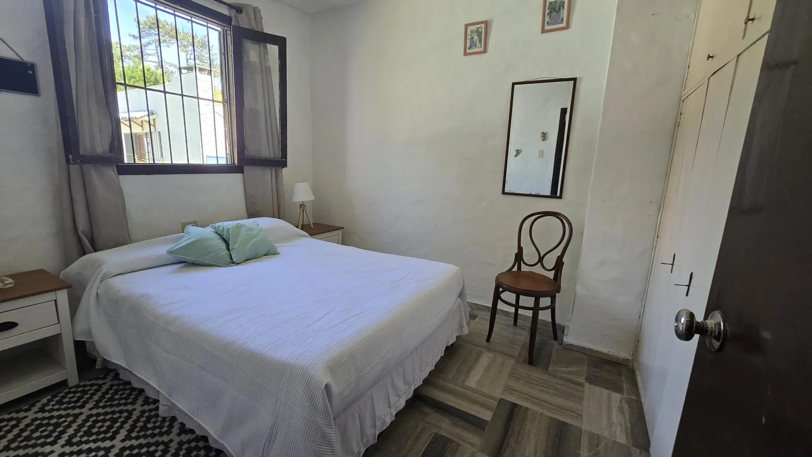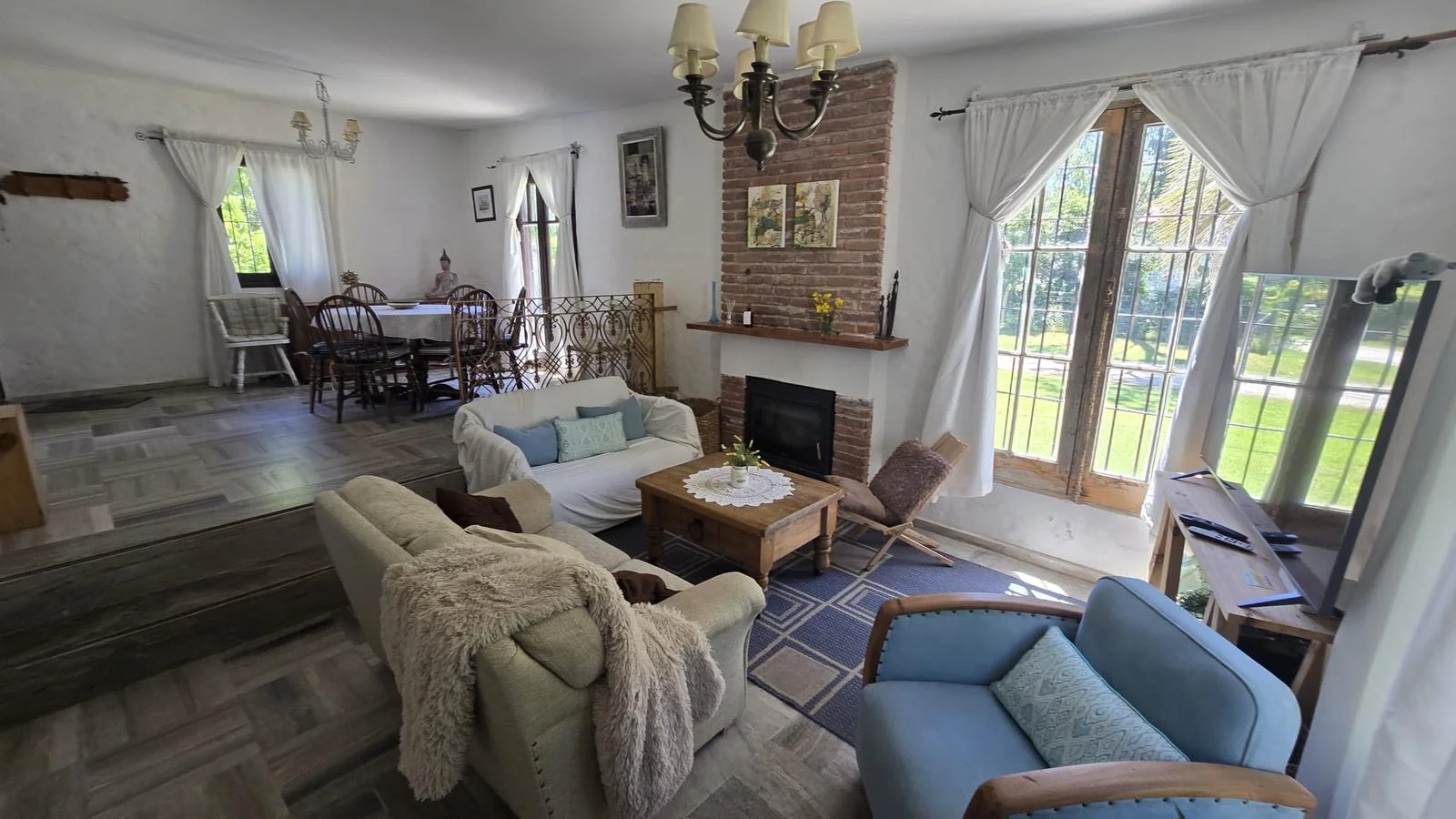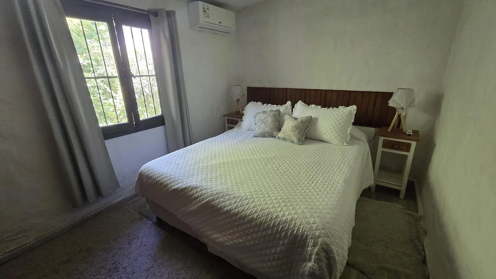 La casa se desarrolla en una sola planta. Cuenta con un amplio y luminoso living comedor con estufa a leña y aire acondicionado.
