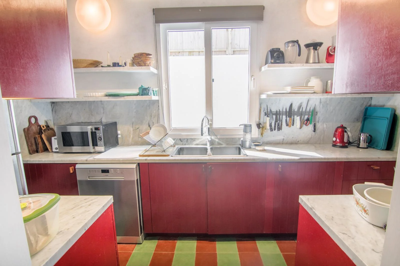 Fully equipped house with 3 bedrooms, 2 bathrooms, living room, dining room, kitchen, deck with a large fenced garden, barbecue, lawndry, service bedroom a unit with a bathroom.