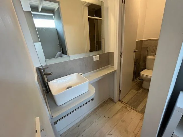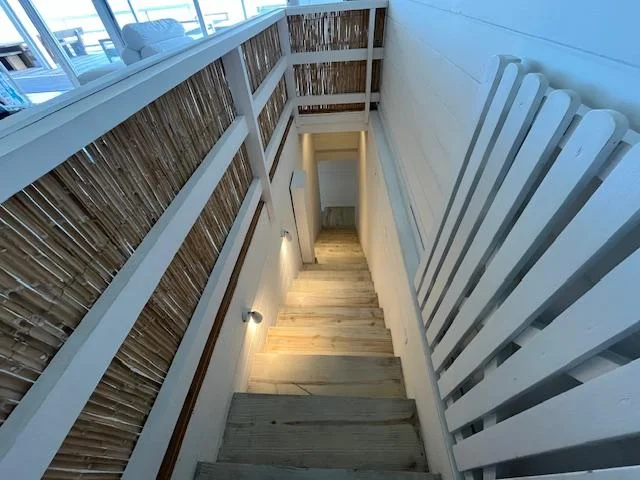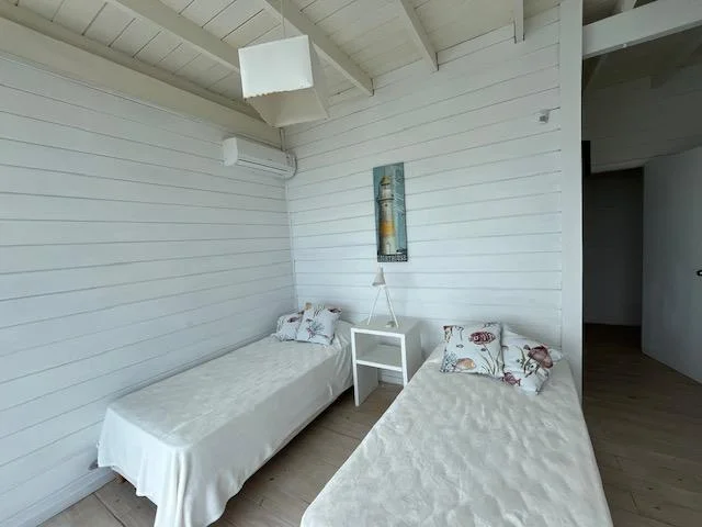 The semi-integrated kitchen is divided into two sections. On this same level, you'll find the master suite facing the ocean, complete with a walk-in closet and the bathroom, as well as a second, smaller suite and a guest toilet.