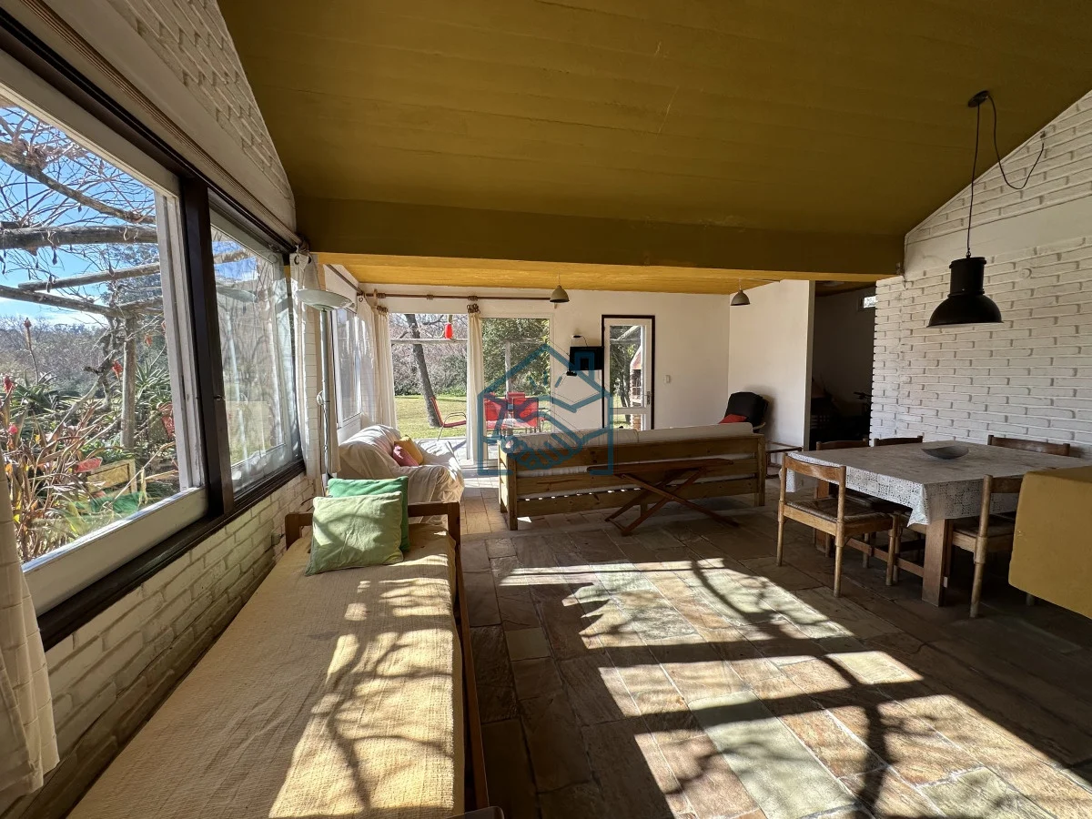 Planta baja: 2 dormitorios, 2 baños, living-comedor con estufa a leña, cocina, patio con parrillero con acceso al jardín.