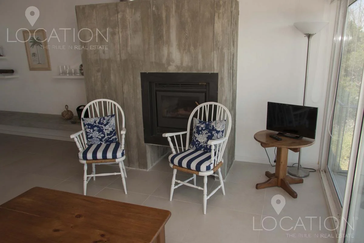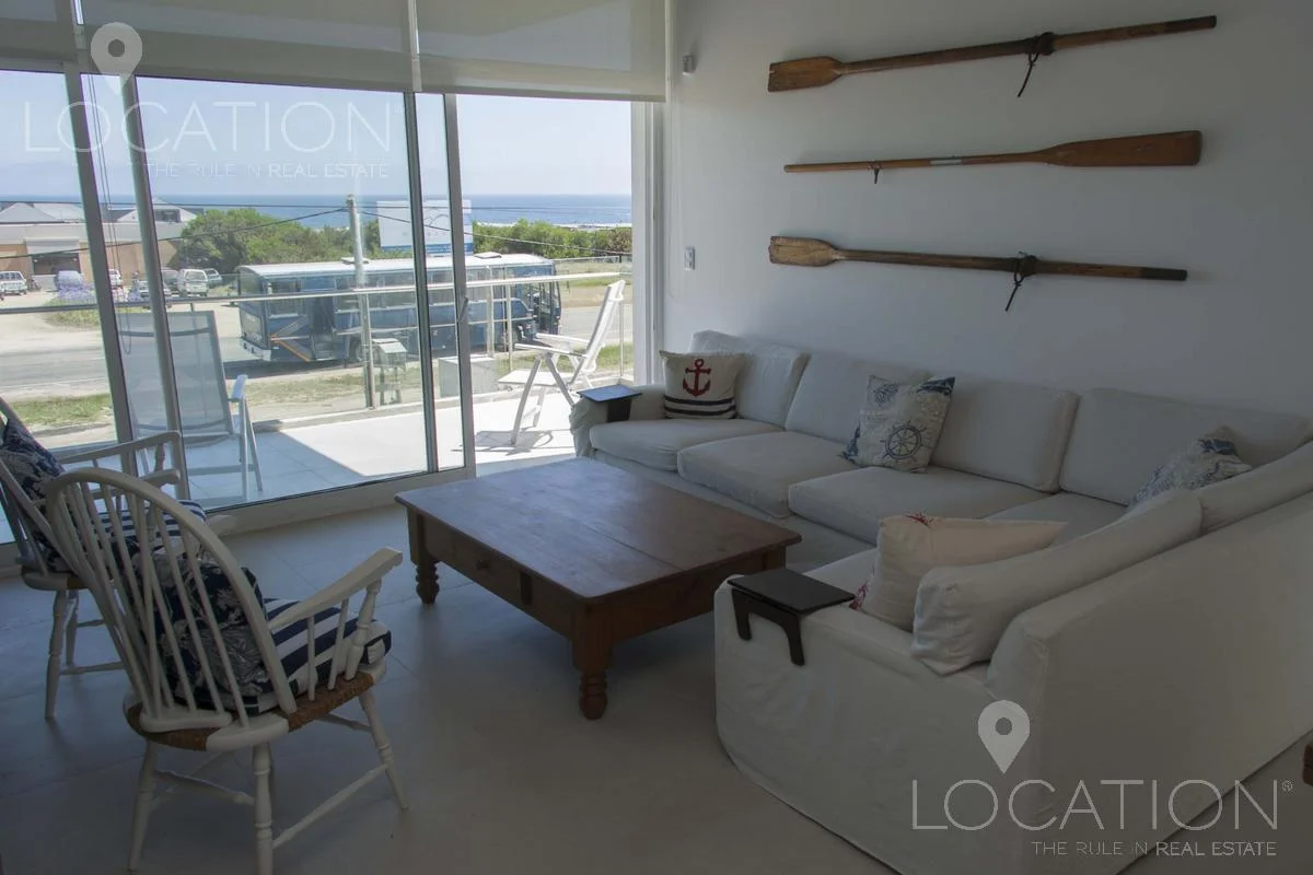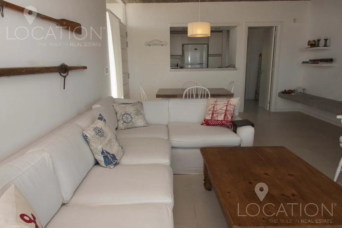 El área común integra cocina con horno y microondas, comedor y living los cuales miran al mar.
