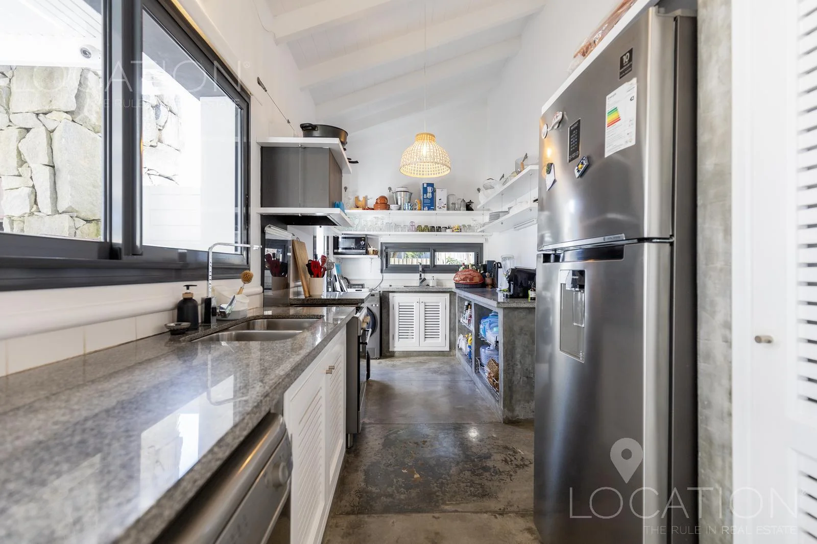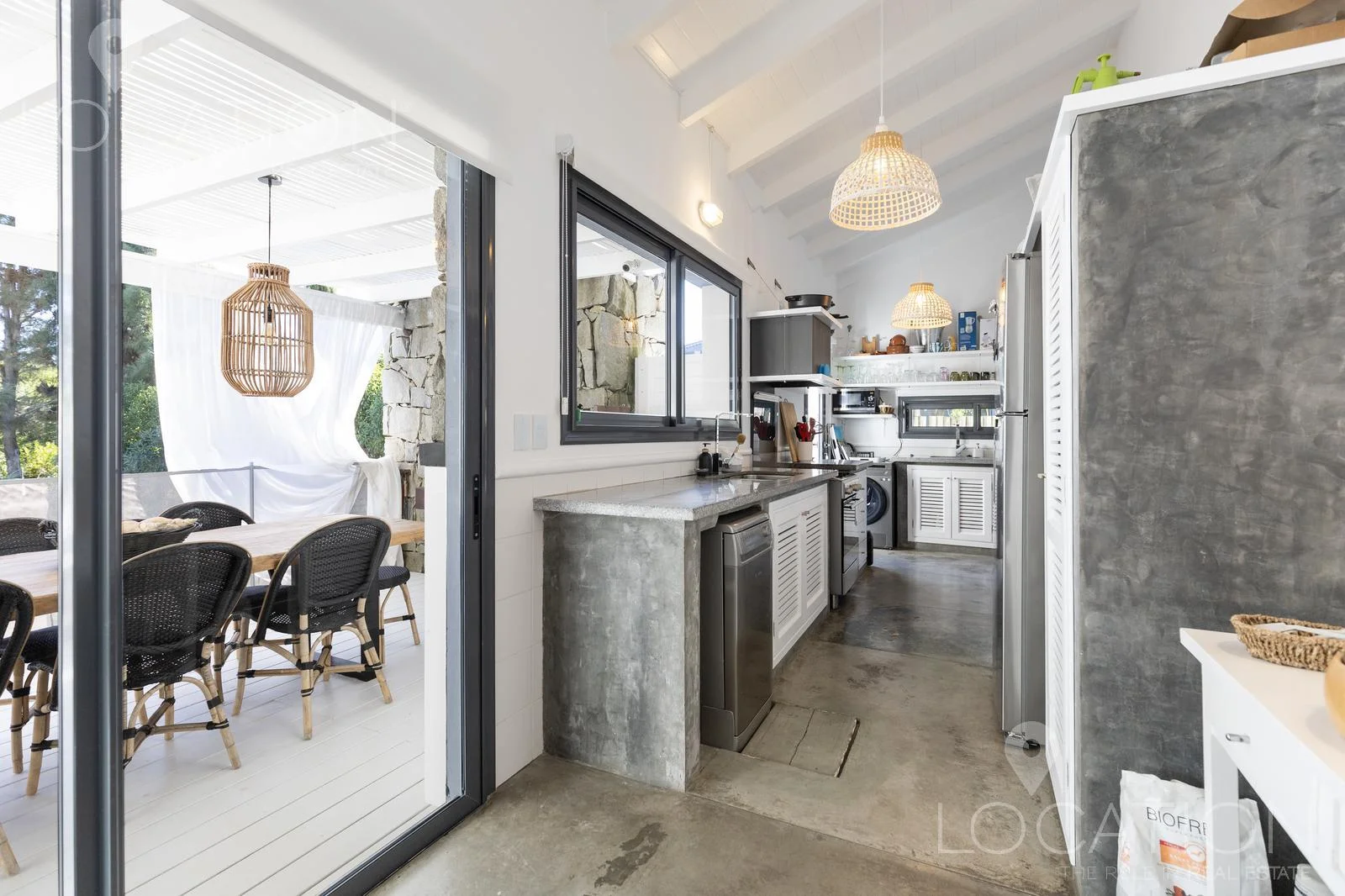 Cuenta con cocina definida, amplio living comedor, parrilla cubierta, living exterior, piscina climatizada, jardín con deck.
