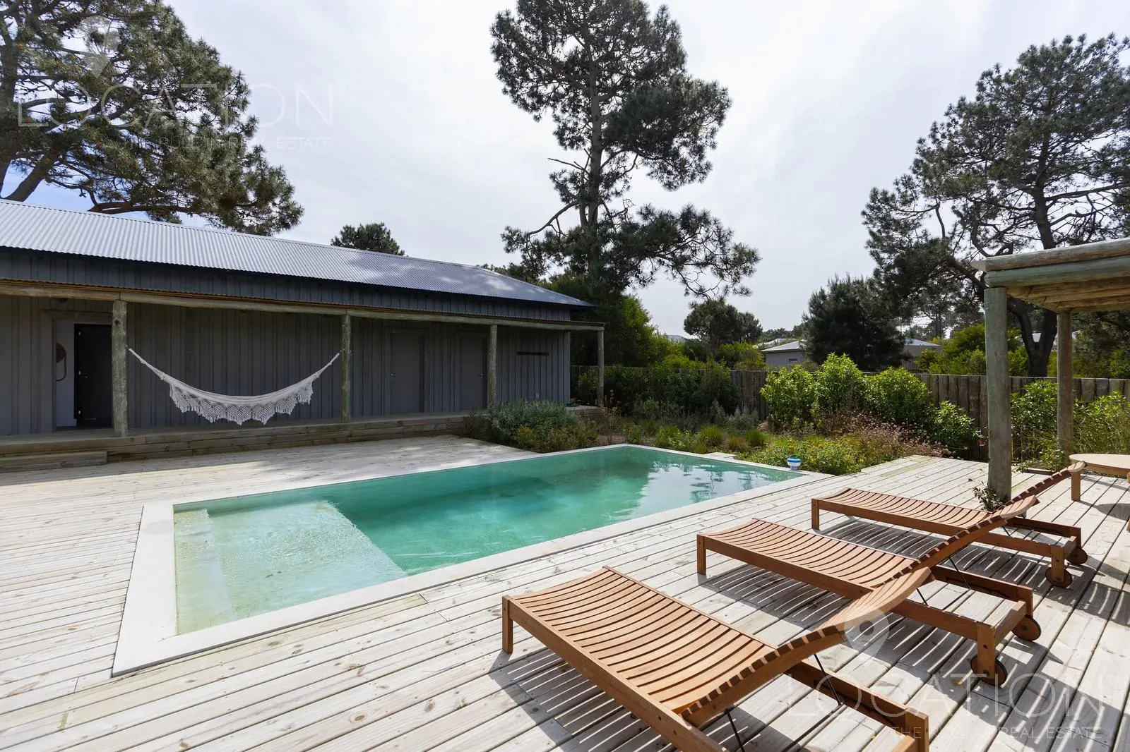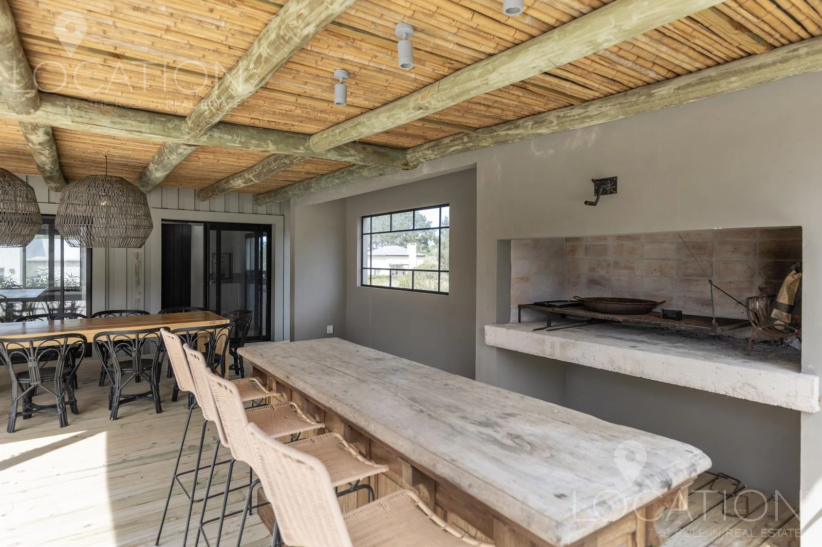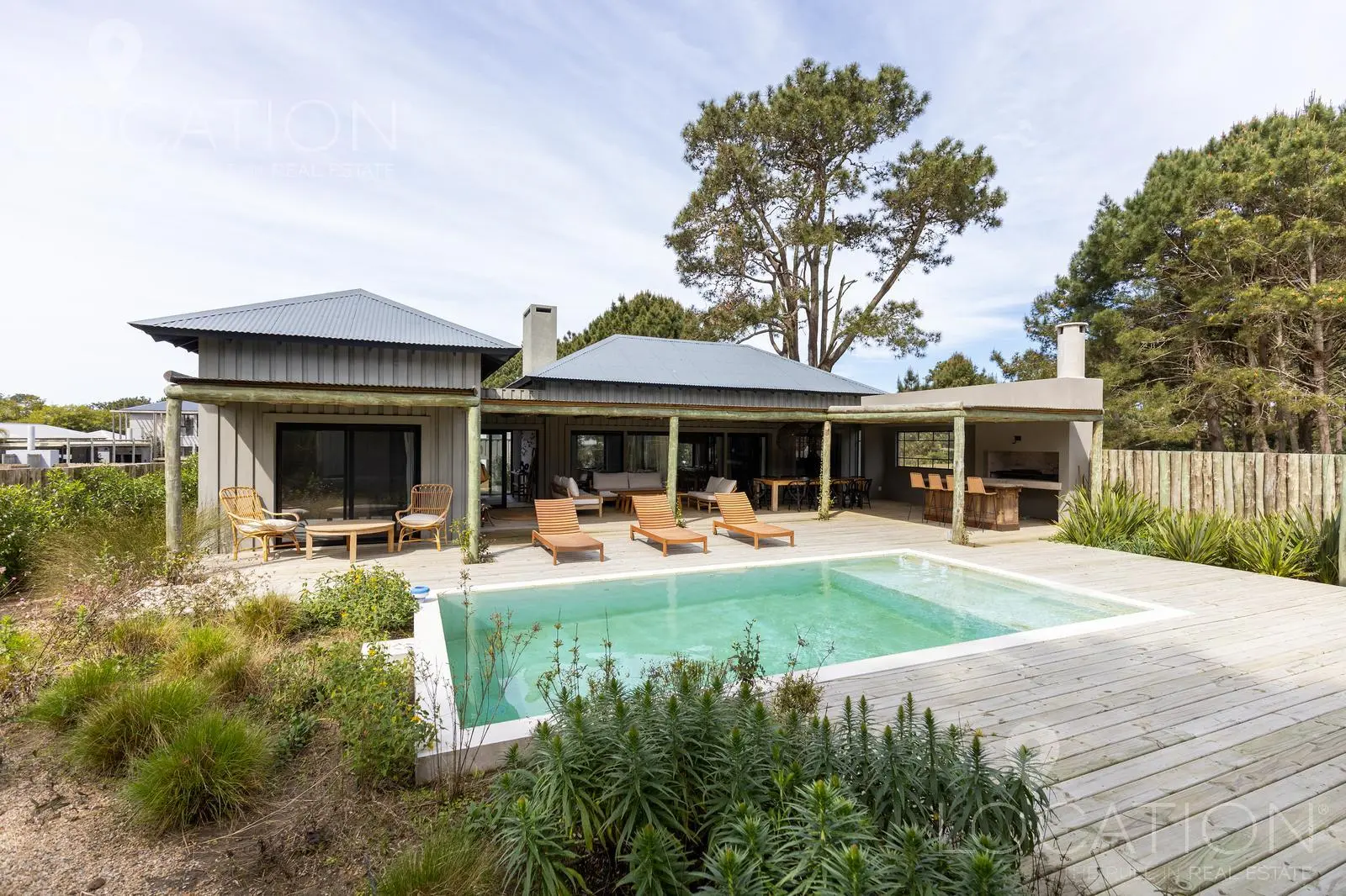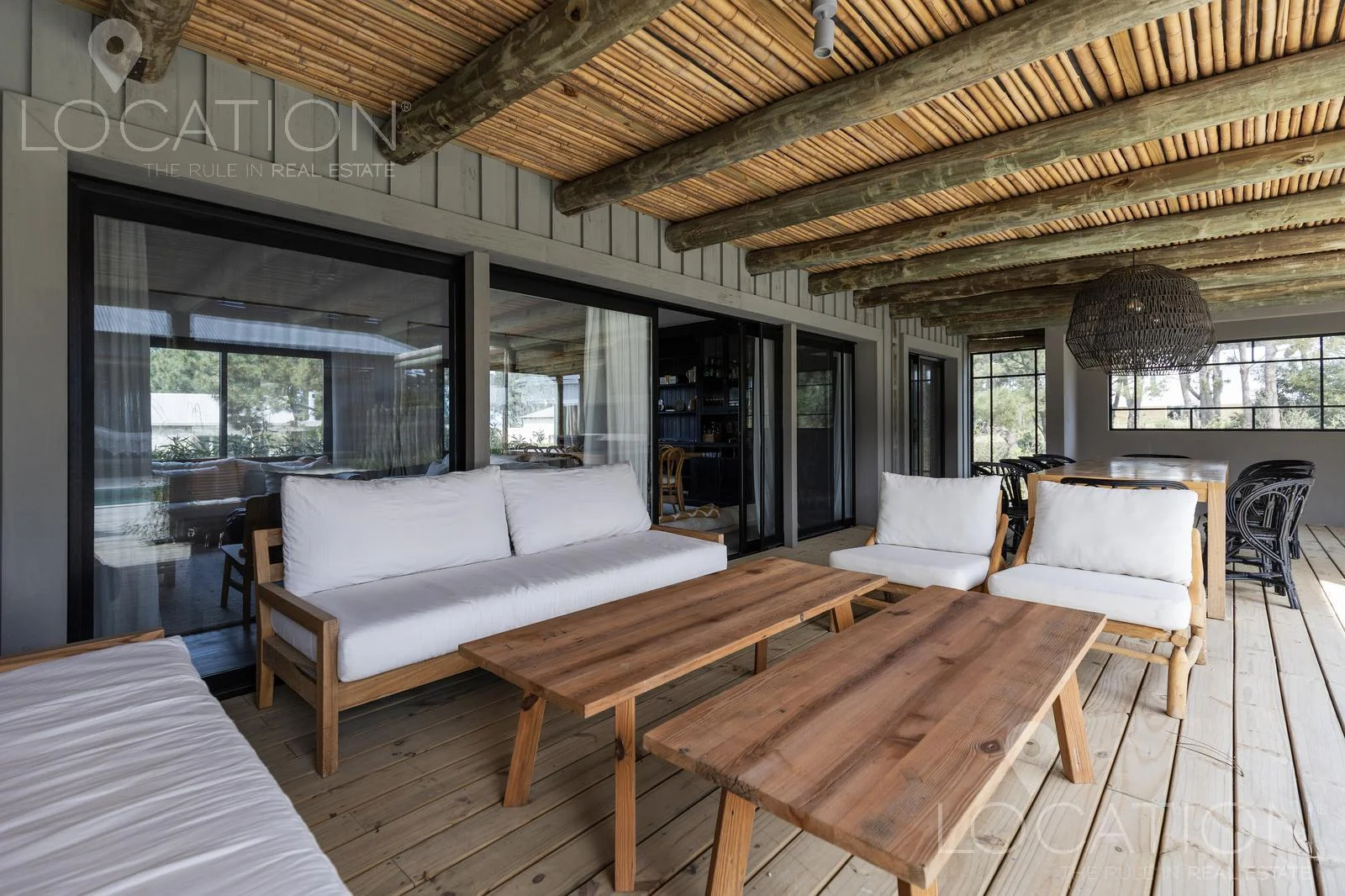 G28 excelente propiedad ubicada en el exclusivo barrio de Pinar de Faro, a minutos de José Ignacio. En una sola planta, la propiedad se distribuye en dos cuerpos importantes, uno principal con living comedor integrado, cocina amplia con vista a la amplia galería y una master suite. El otro cuerpo se compone de 3 habitaciones en suite en espejo con el primer bloque mencionado. Cuenta con amplios espacios de estar, tanto en interiores como en exteriores. El barrio ofrece la tranquilidad que caracteriza al balneario y las comodidades de un barrio privado.