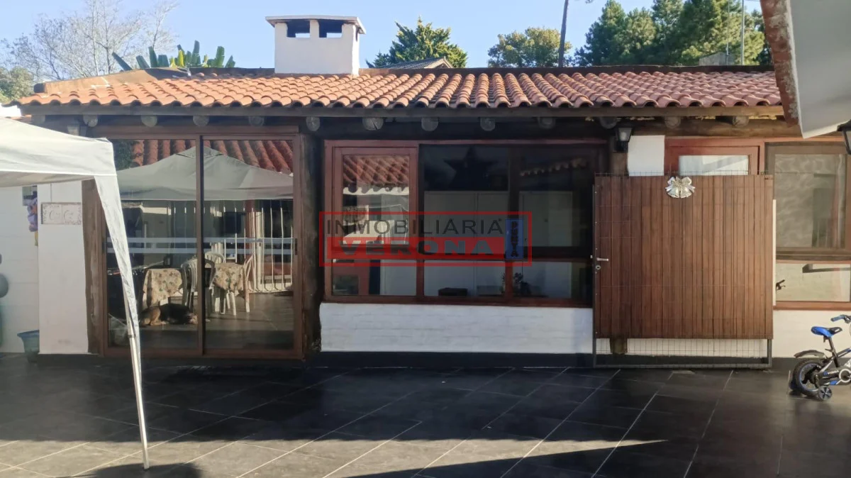 Clásico chalet súper luminoso completamente cercado. Cuenta con amplio living comedor con estufa a leña, aire acondicionado, 4 dormitorios, 2 baños, cocina definida, lavadero, ademas de una amplia barbacoa, habitación de servicio o huéspedes, cochera cubierta para 3 vehículos y un gran jardin íntimo.