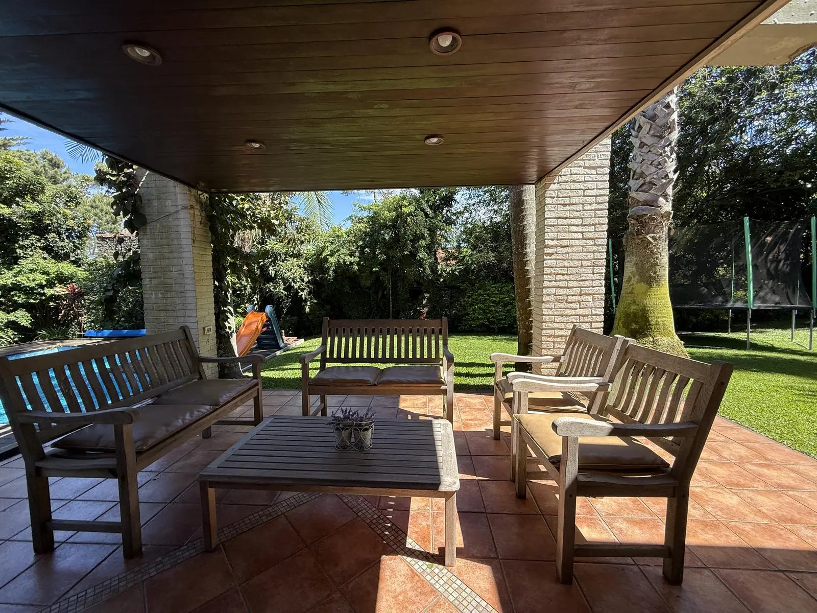 En el exterior, ofrece piscina climatizada, parrillero techado y garage cerrado para dos autos.