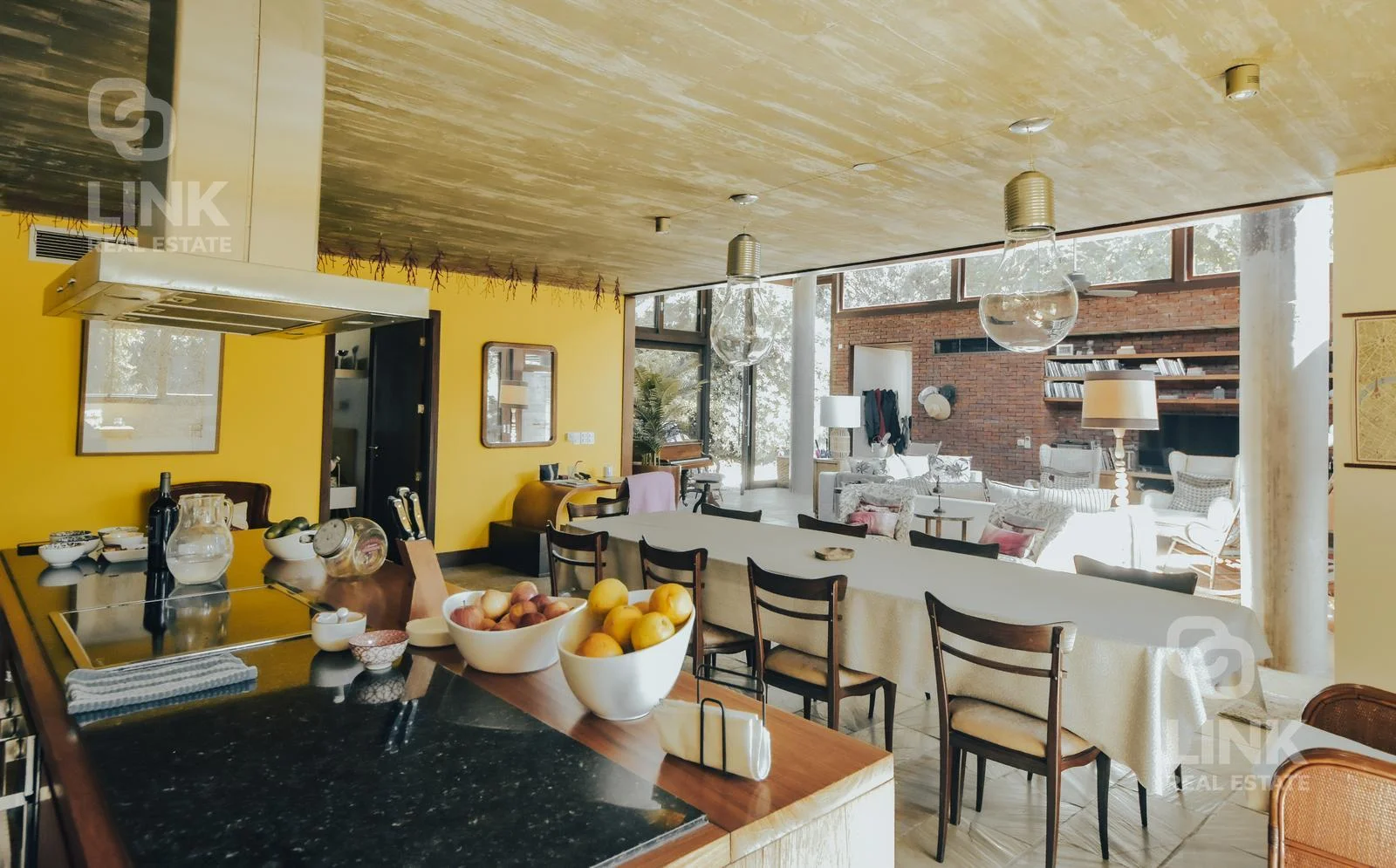 La casa se desarrolla con amplios ventanales que integran interior y exterior, junto a techos en doble altura que potencian la luz natural, generando ambientes luminosos y confortables durante todo el año. El área social cuenta con living-comedor y cocina integrada, creando espacios ideales para disfrutar y compartir.