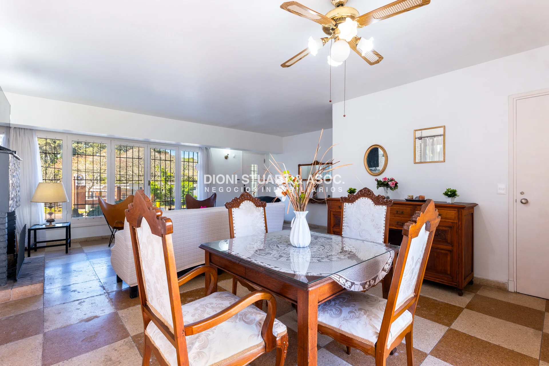 Edificada en un lote de 839m2, todo en construcción tradicional de doble pared de ladrillo. La casa tiene en total 270m2 y se compone de tres pisos: subsuelo, planta baja y planta alta. En total cuenta con 5 dormitorios definidos con placares empotrados y cerramiento en aluminio nuevo, 3 baños (solo uno en suite) y a demás dependencia de servicio con baño fuera de la casa.