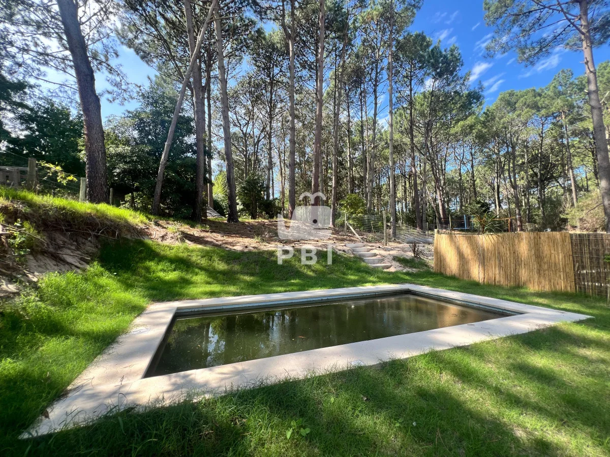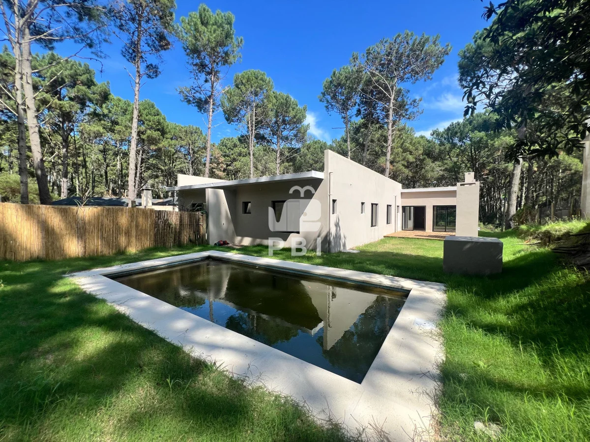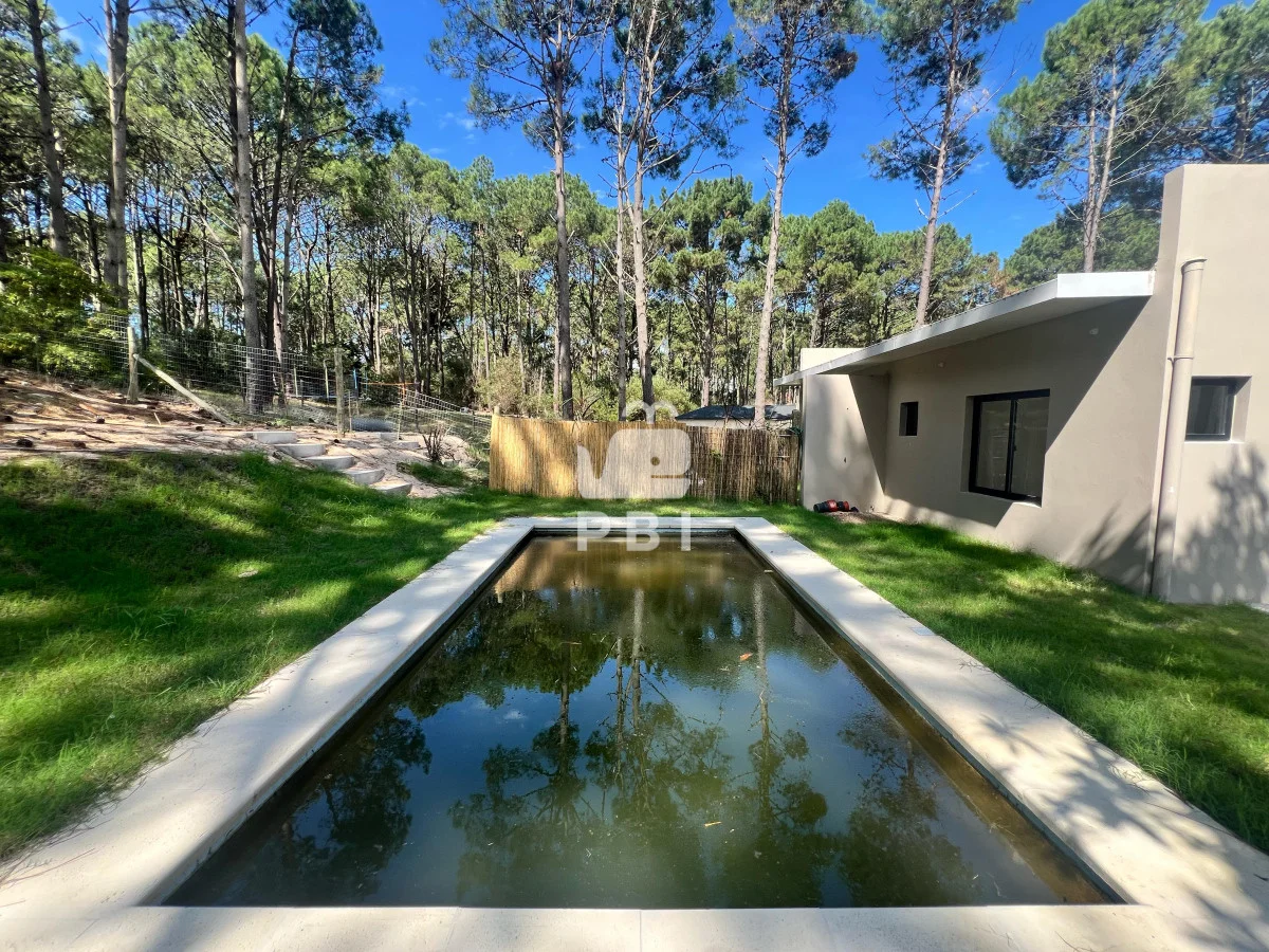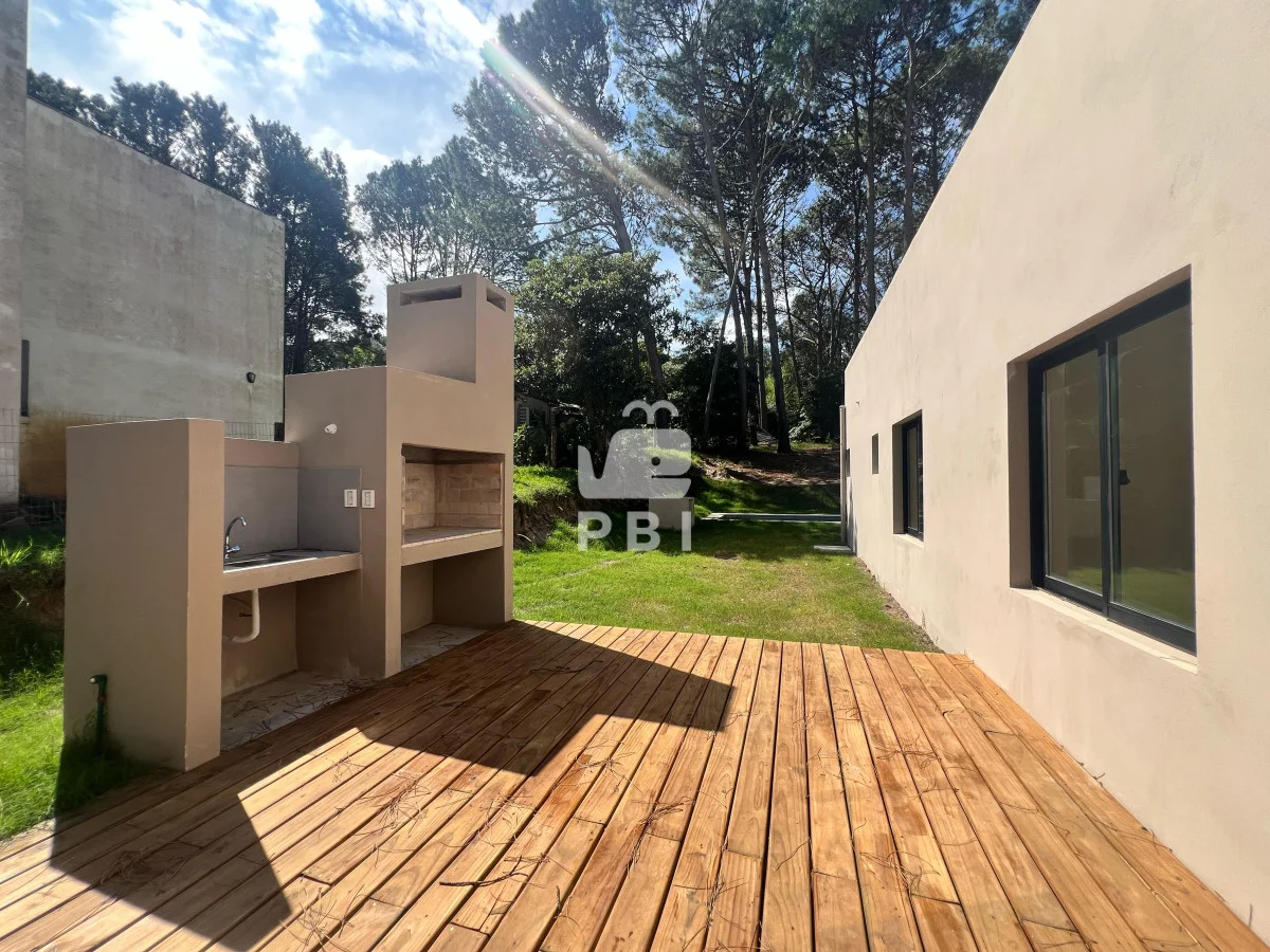 Su terreno es de 896 m². La casa cuenta con 3 dormitorios, de los cuales uno es en suite, 2 baños, living comedor, cocina integrada, parrillero y piscina.