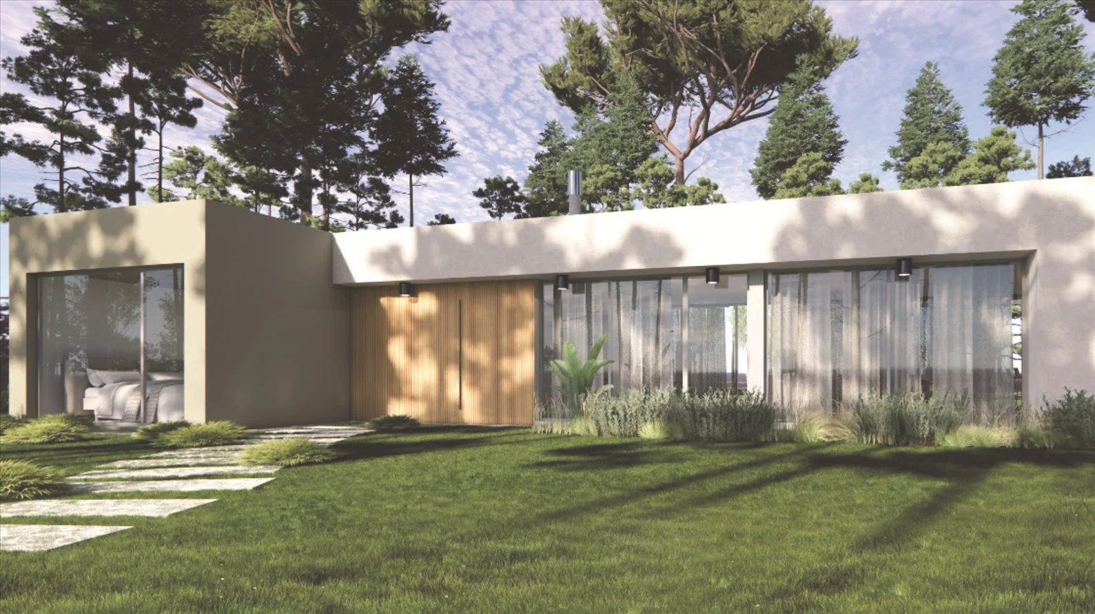 La casa se distribuye en un solo nivel, con 158 m² construidos sobre 1.121 m² de terreno.