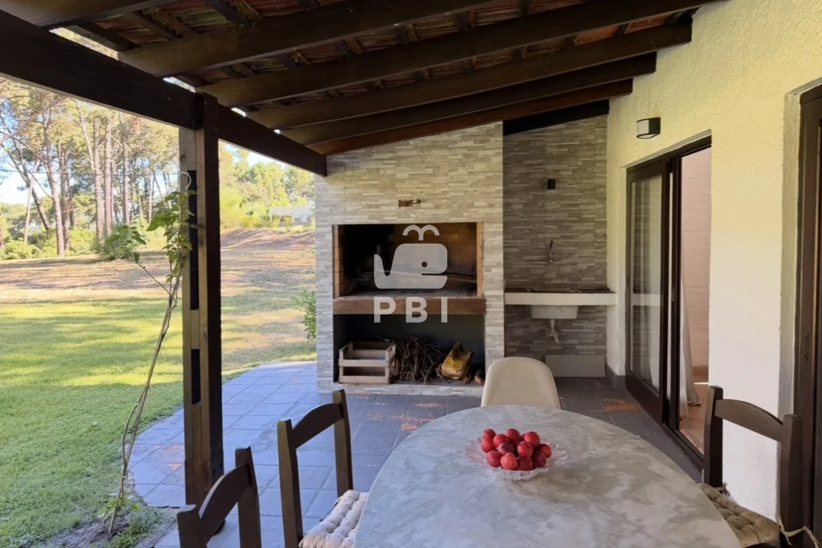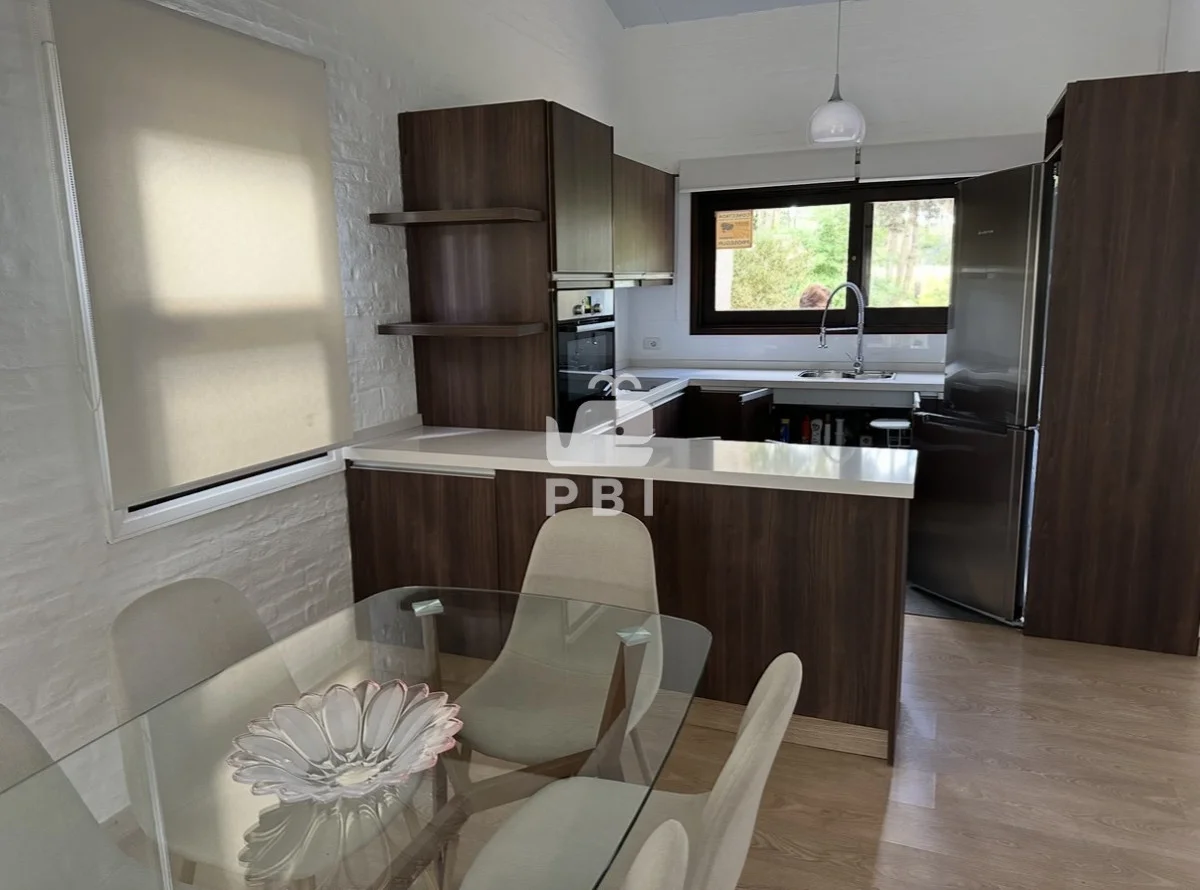 La casa cuenta con un luminoso living comedor con cocina integrada, formando un espacio amplio y funcional. Dispone de tres dormitorios, uno de ellos en suite, además de un baño completo adicional.