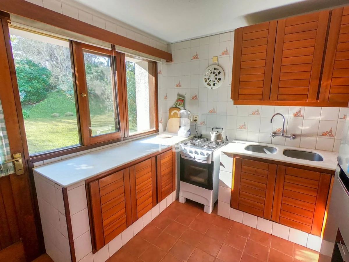 Posee luminoso living con estufa a leña, comedor, cocina definida que conecta con la terraza, jardín y el parrillero.