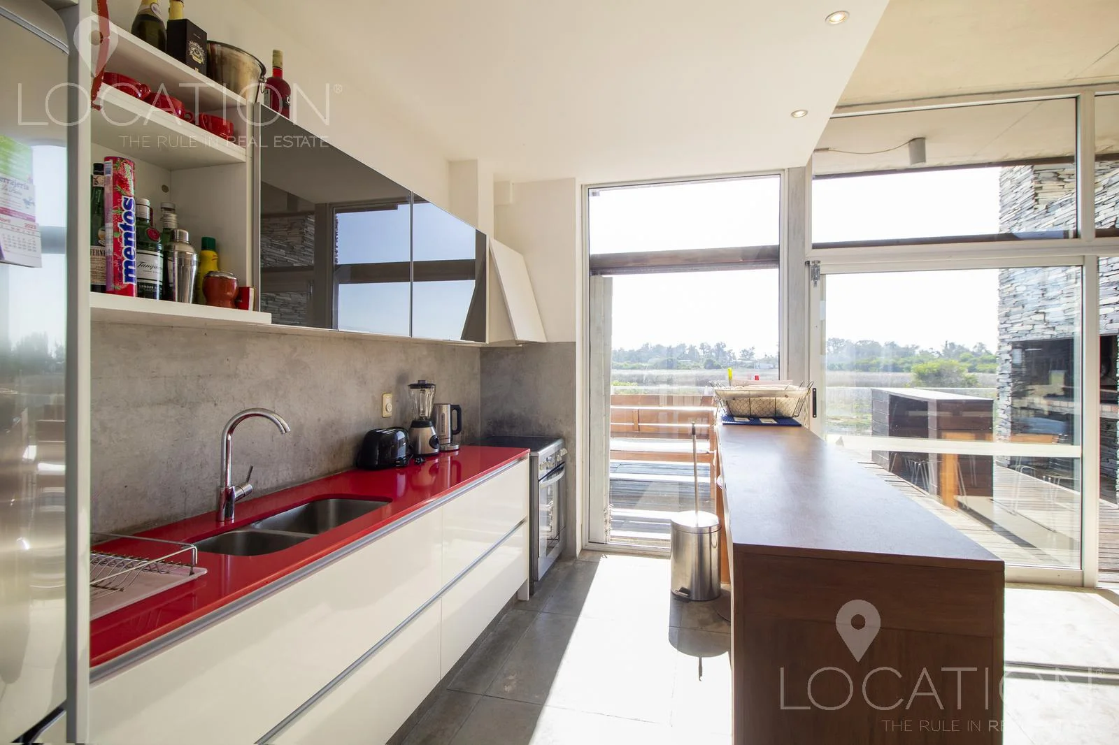 Desarrollada en 3 niveles se encuentra esta propiedad en Santa Monica con vista, al mar y con vista franca a la Laguna Jose Ignacio.