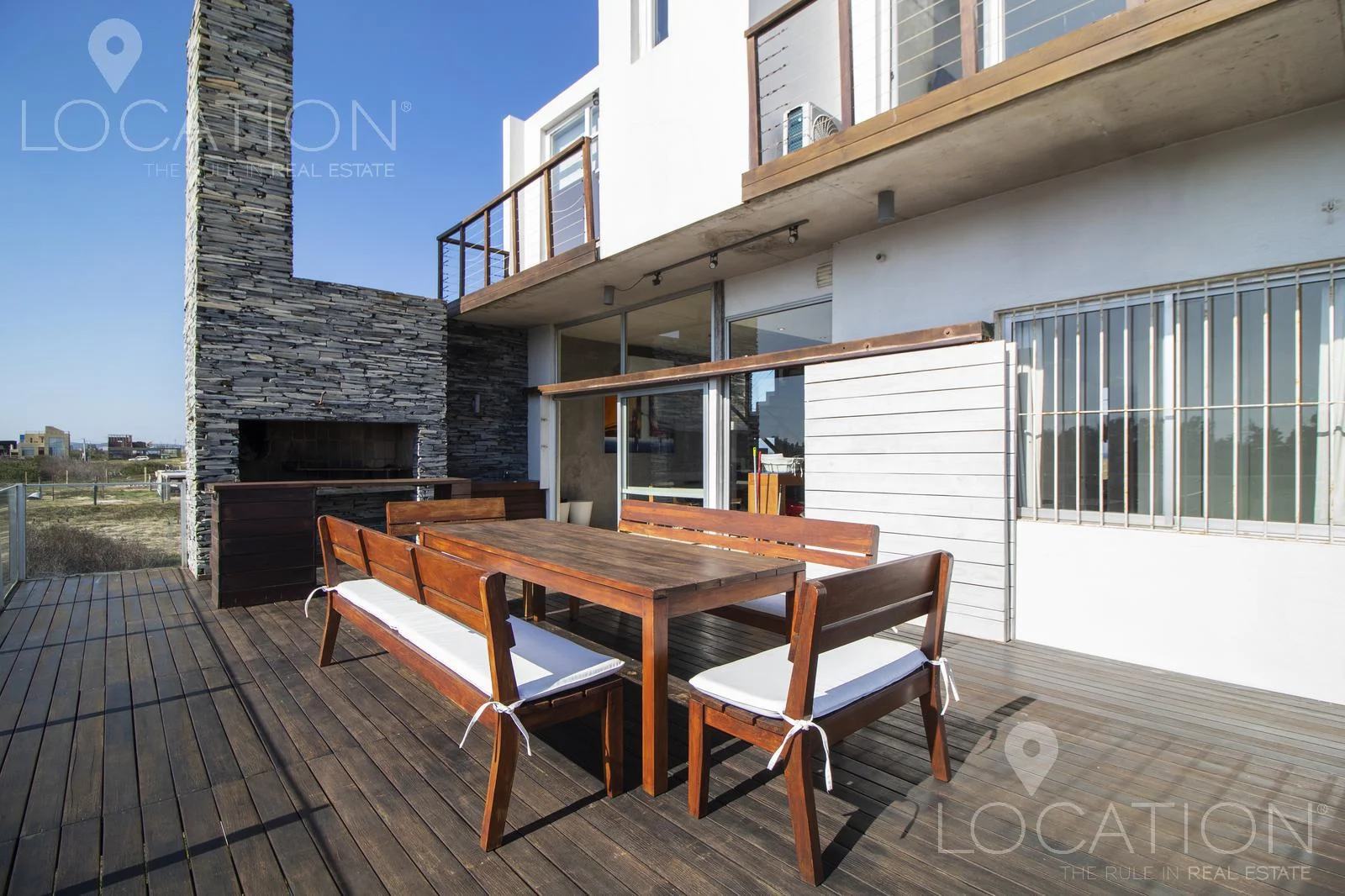 La casa cuenta con parrilla con comedor exterior, para disfrutar a full la vista hacia la laguna