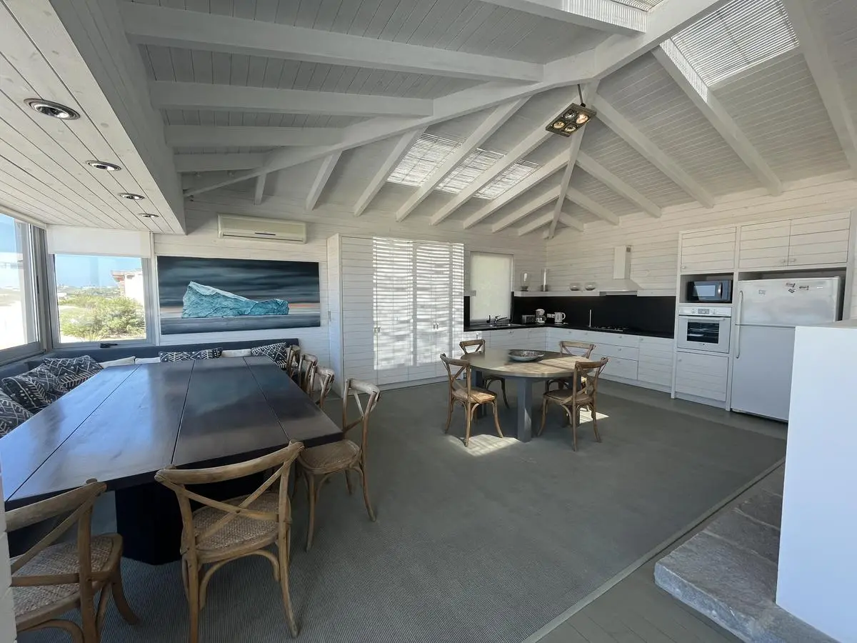 Construida en una planta que se divide en tres bloques. En el primero se encuentra una gran recepción, living comedor separados por una estufa de muy buen tamaño, cocina integrada y la máster suite todos con vista al mar.