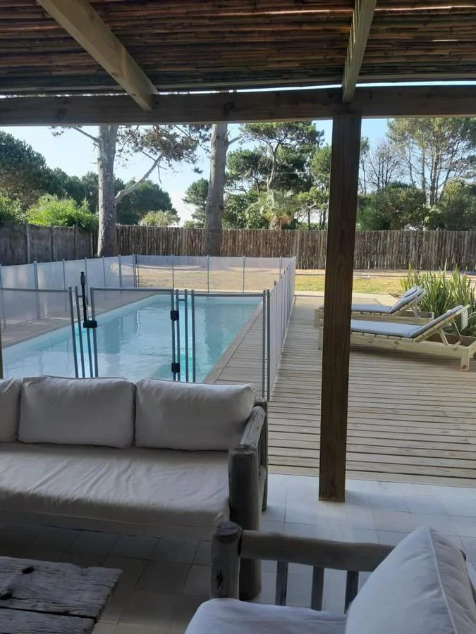 Propiedad dentro de Pinar del Faro, barrio muy solicitado por su paisaje arbolado y seguridad. La casa cuenta con tres dormitorios + dependencia de servicio. Diseño moderno y espacios luminosos. El dormitorio principal es en suite. El living, comedor y la cocina están bien equipados. La decoración es sobria y elegante. Piscina climatizada y una amplia galería techada que contiene un living de exterior. Cómodo Parrillero, con una gran mesa para disfrutar en exterior y bajo techo.Hay un estacionamiento con pergola para 2 autos. El barrio cuenta con cancha de tennis, piscinas, club house y servicio de playa.