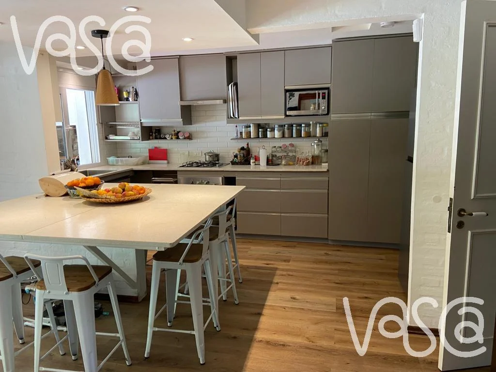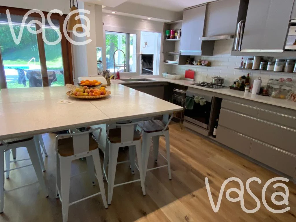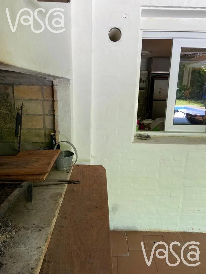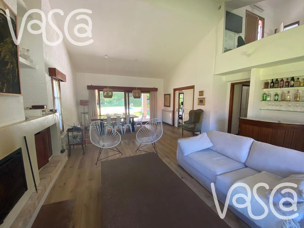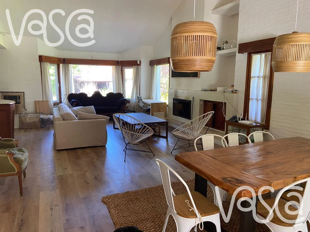 En planta baja cuenta con un amplio living comedor, bar y estufa a leña, ventanales con salida al jardín, living exterior y parrillero. Cocina definida totalmente equipada y con salida directa al parrillero y jardín. Baño social.