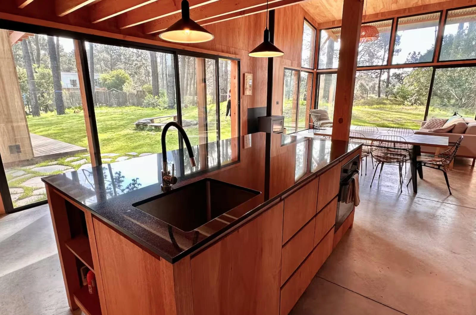 Arquitectura contemporánea en madera, ubicada en zona tranquila rodeada de bosque, a minutos de playas y comercios.