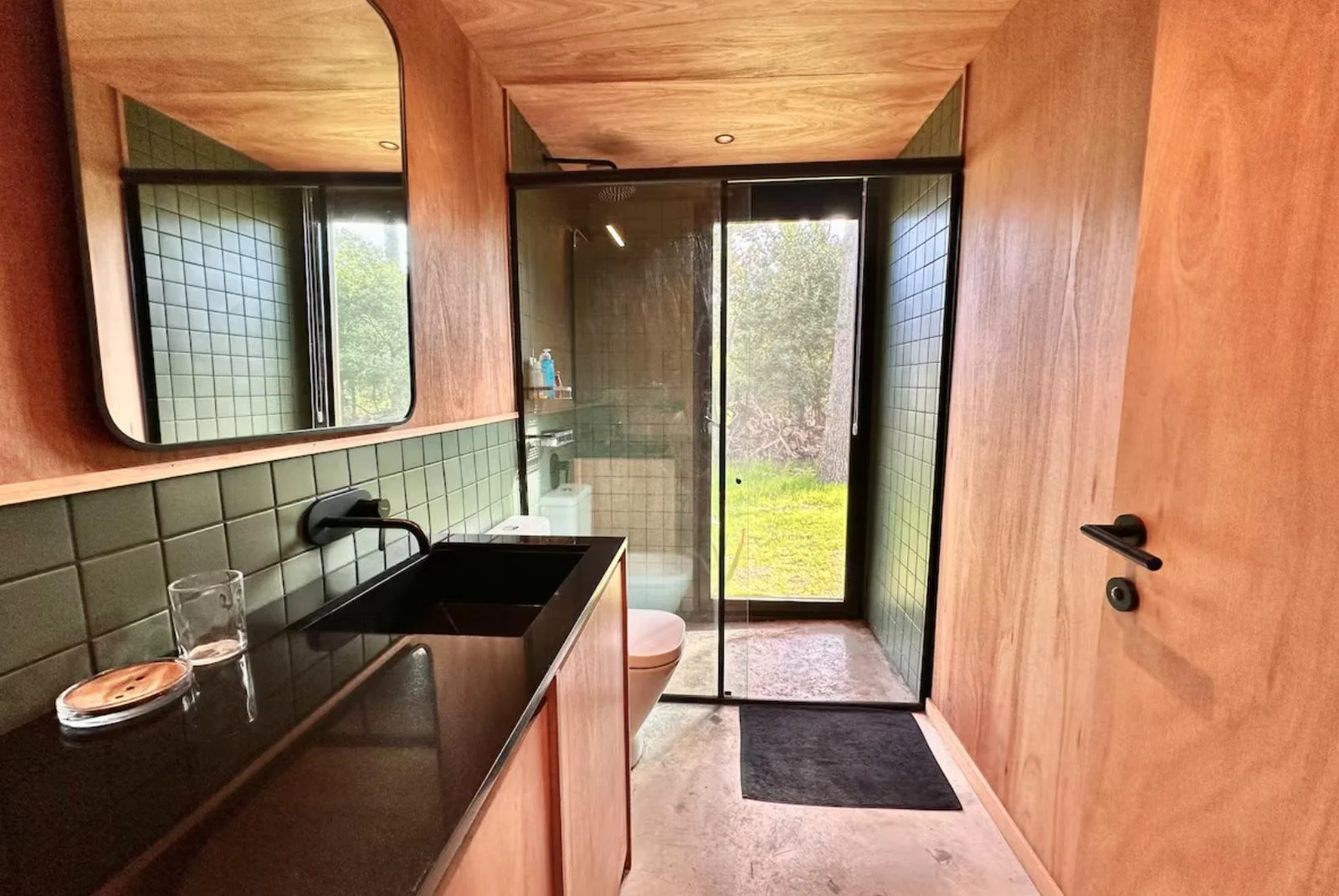 Contemporary wooden architecture in a quiet area surrounded by forest, just minutes from beaches and shops.