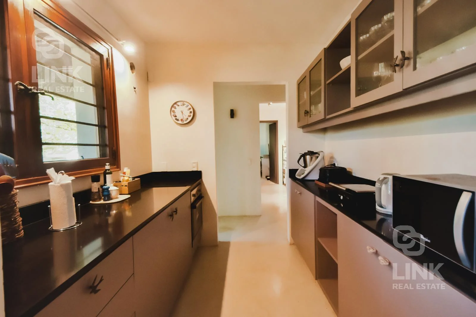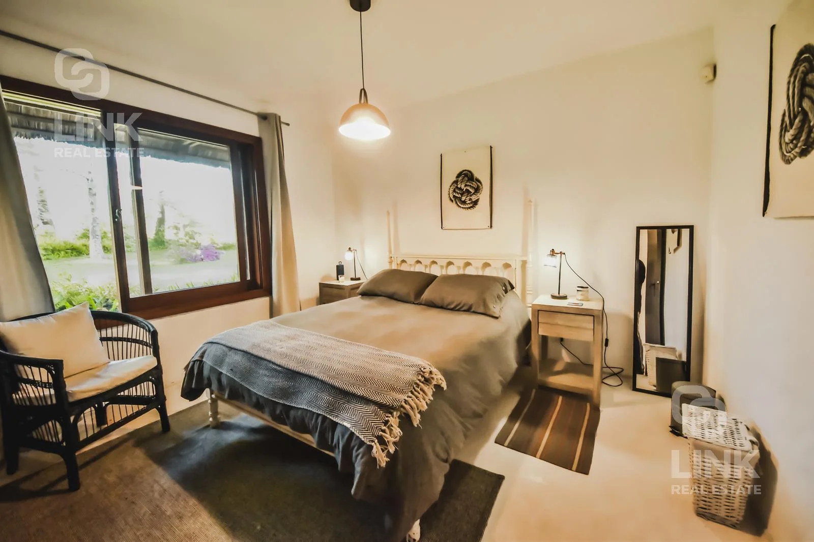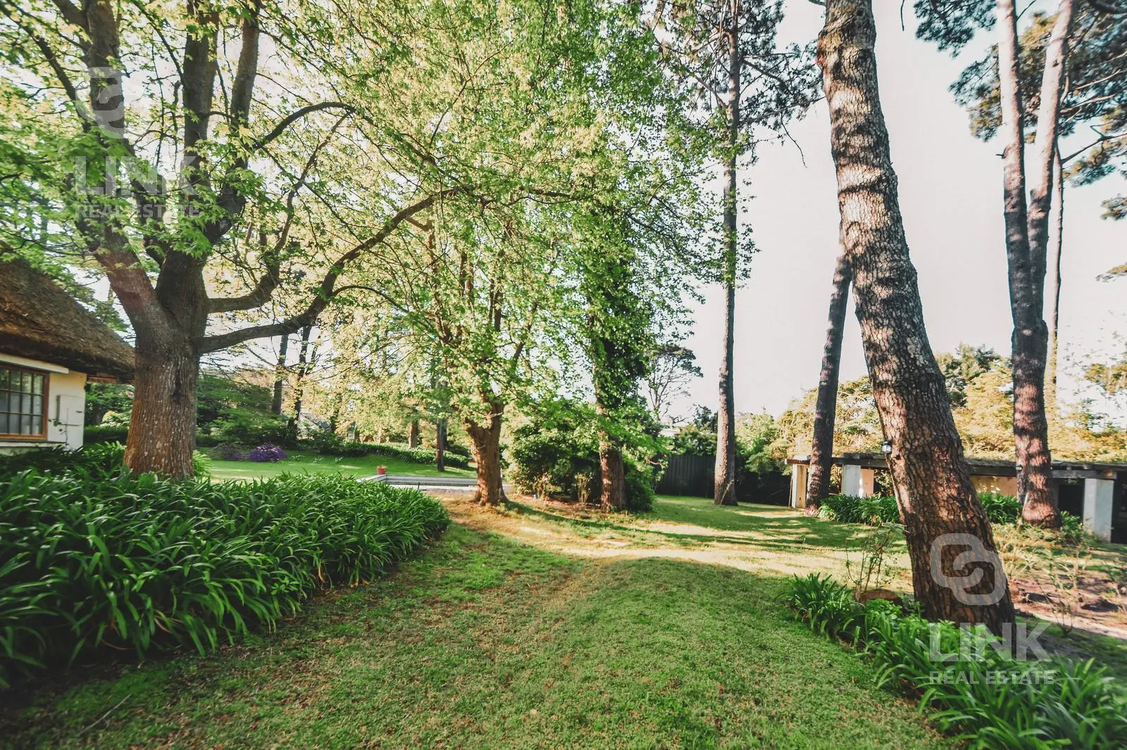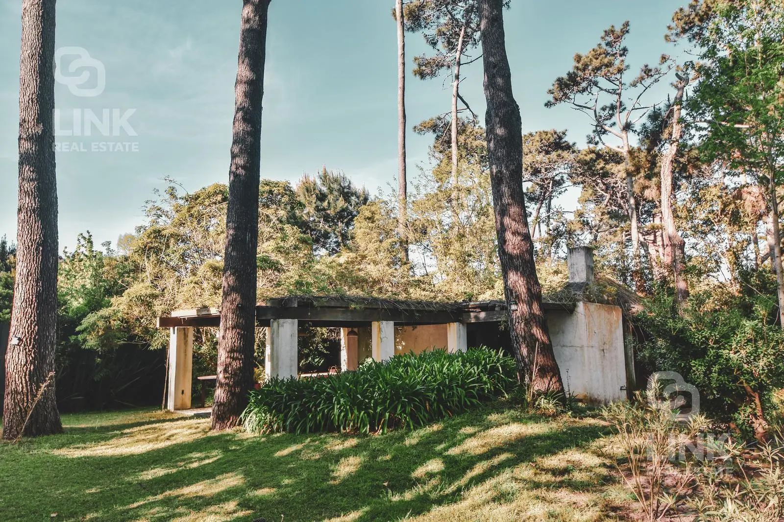 Emplazada en un extenso parque de 3.580 m², en un entorno natural rodeado de pinos y abundante vegetación a tan solo unas cuadras del mar. La residencia dispone de 4 dormitorios, 3 baños —2 en suite— y dependencia de servicio. Los ambientes son generosos en tamaño y luz natural; el living y el comedor se integran armoniosamente con el exterior, brindando vistas al verde desde todos los sectores. La cocina, amplia y funcional, cuenta con comedor diario y salida directa a una galería exterior.
