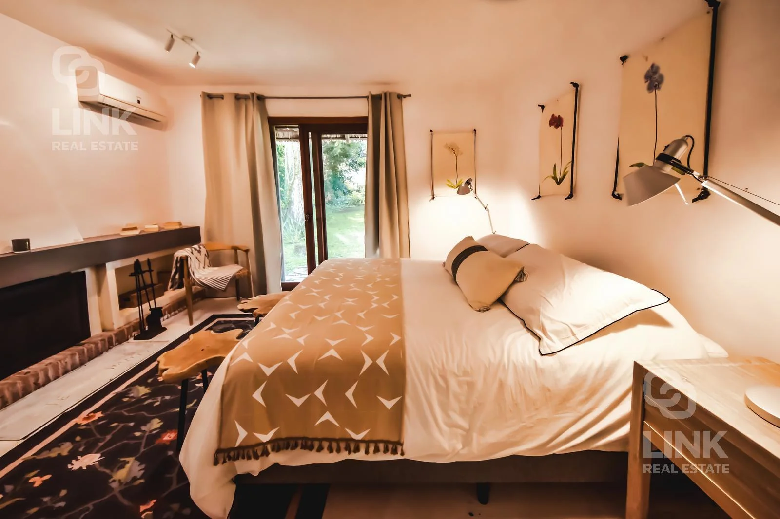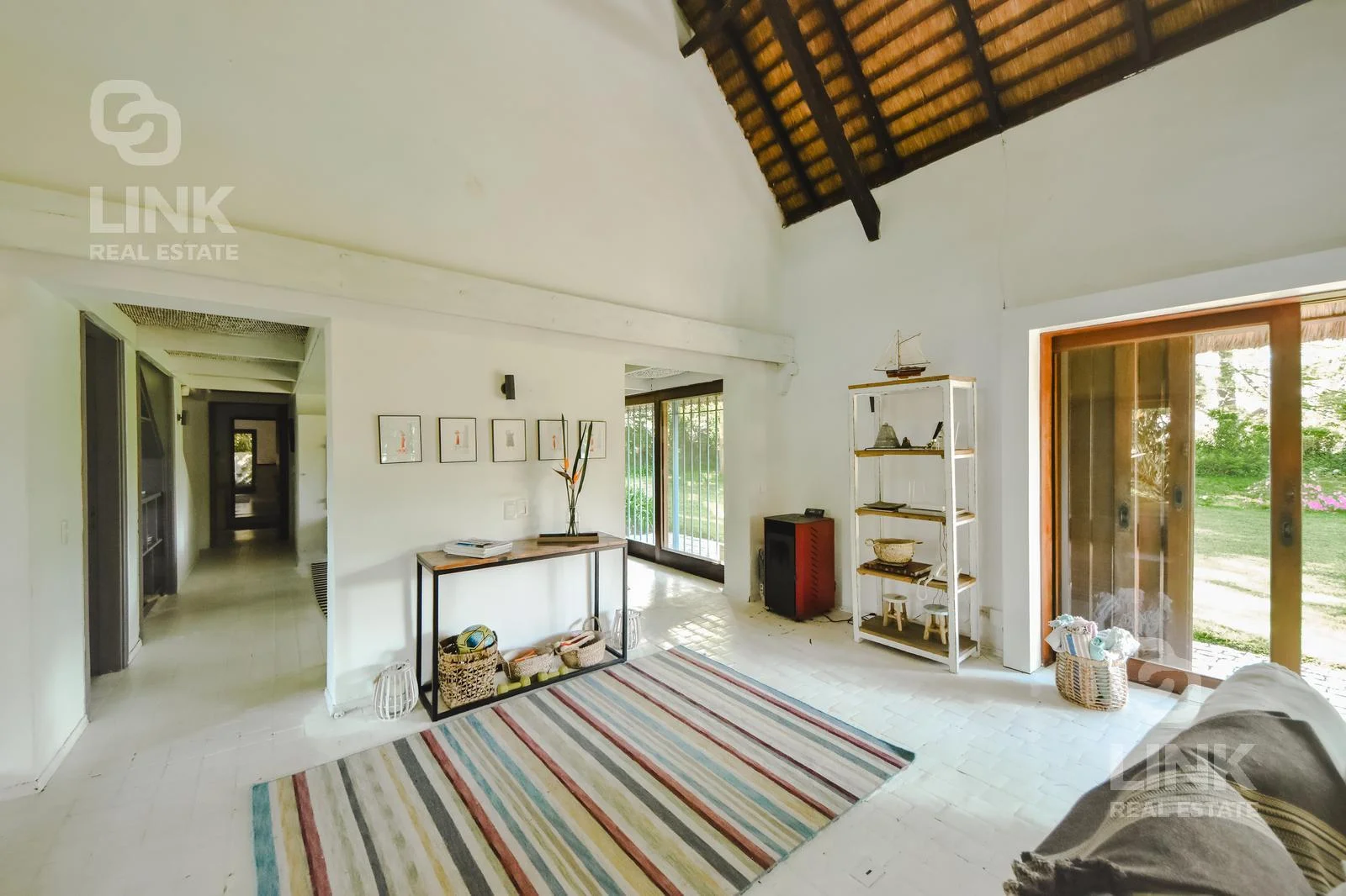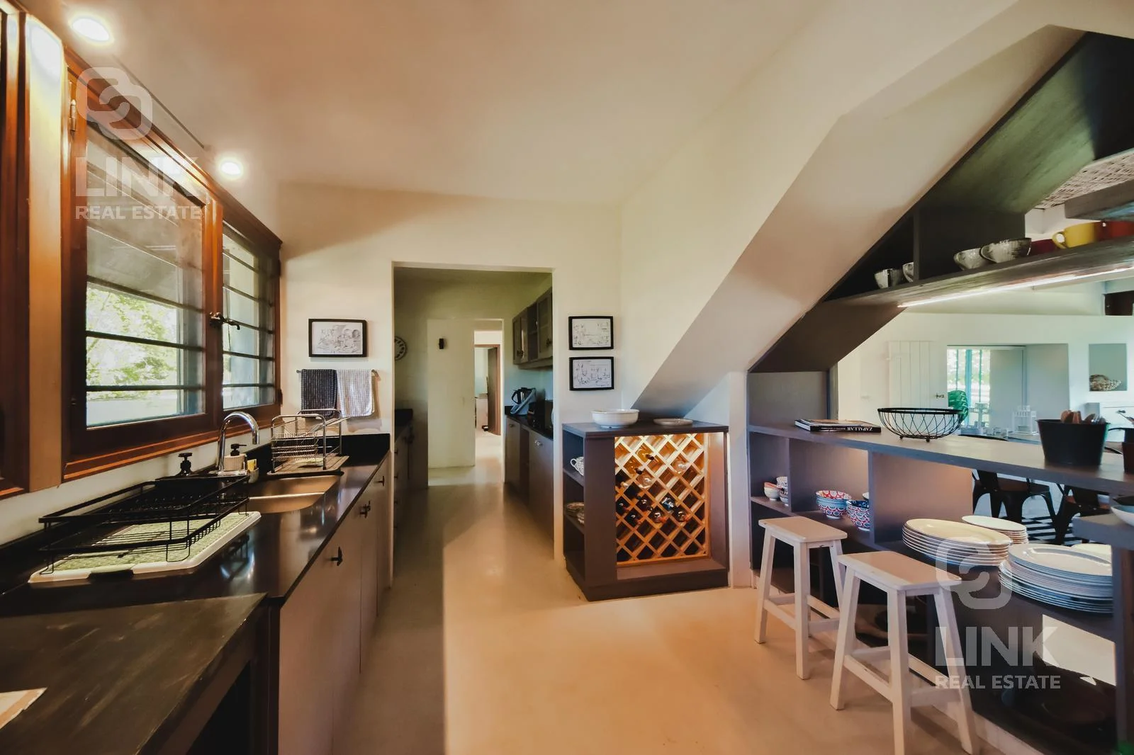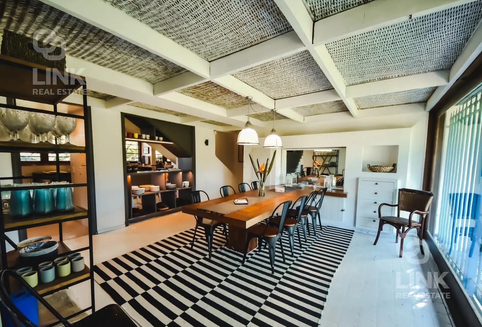 Emplazada en un extenso parque de 3.580 m², en un entorno natural rodeado de pinos y abundante vegetación a tan solo unas cuadras del mar. La residencia dispone de 4 dormitorios, 3 baños —2 en suite— y dependencia de servicio. Los ambientes son generosos en tamaño y luz natural; el living y el comedor se integran armoniosamente con el exterior, brindando vistas al verde desde todos los sectores. La cocina, amplia y funcional, cuenta con comedor diario y salida directa a una galería exterior.