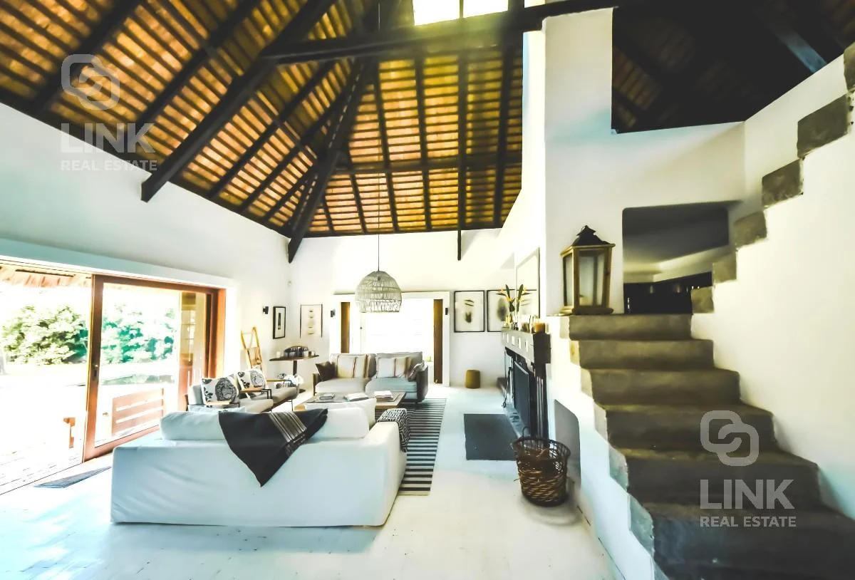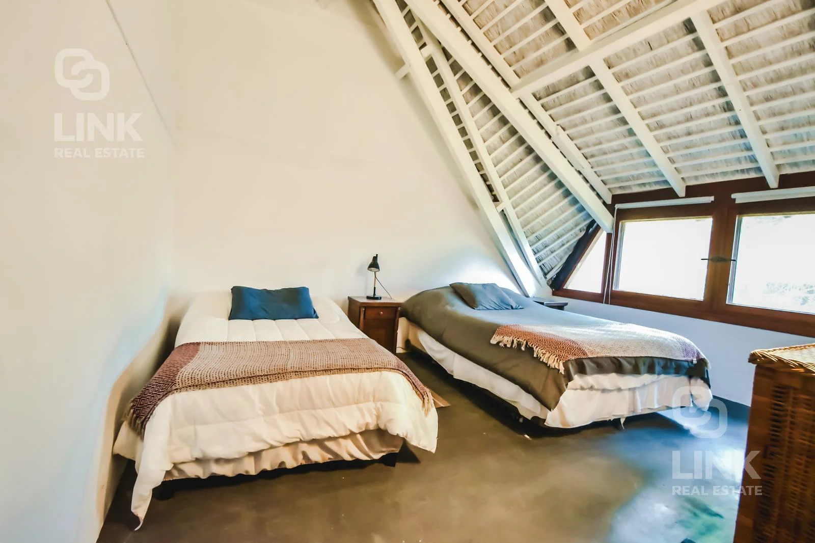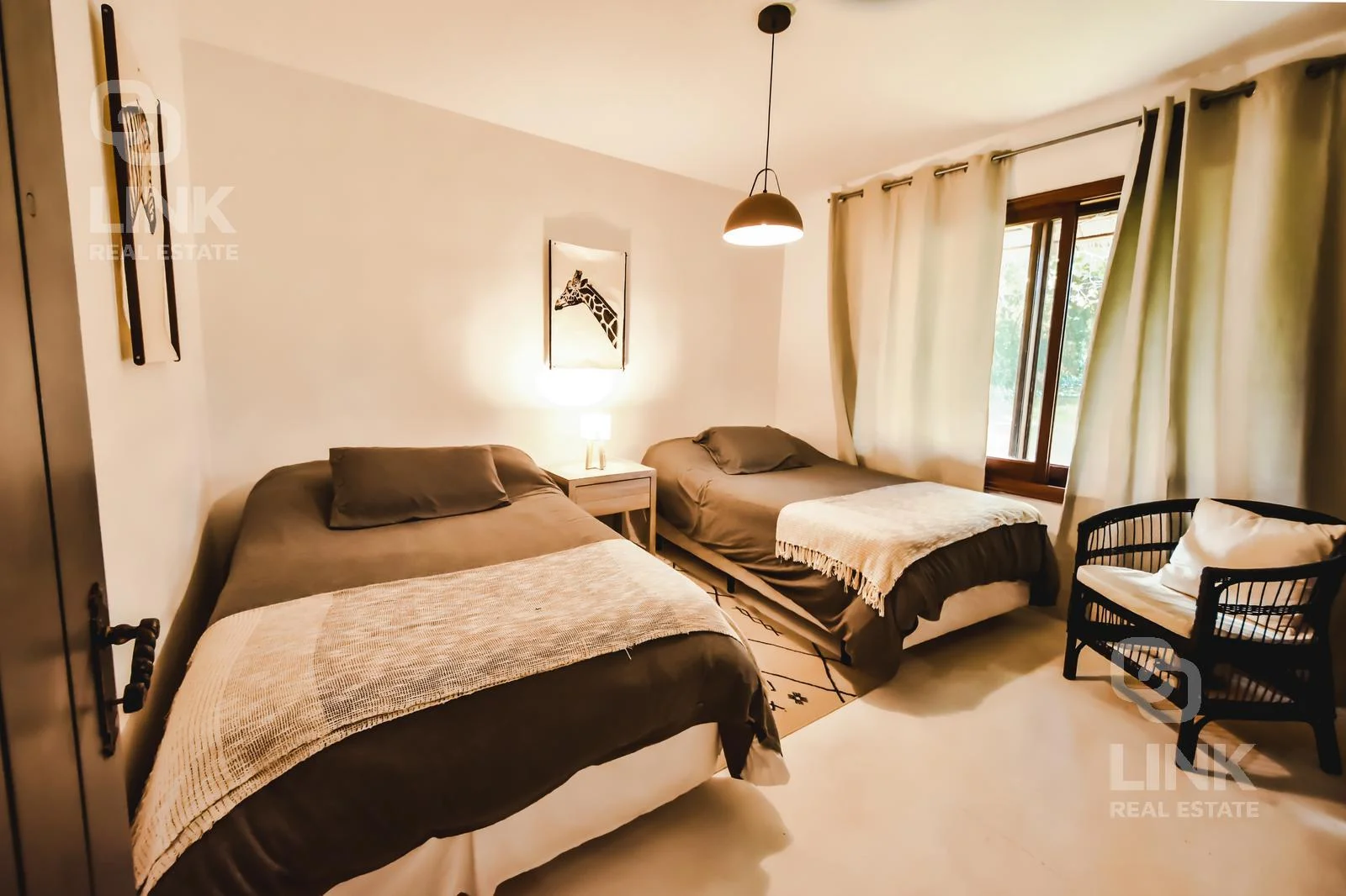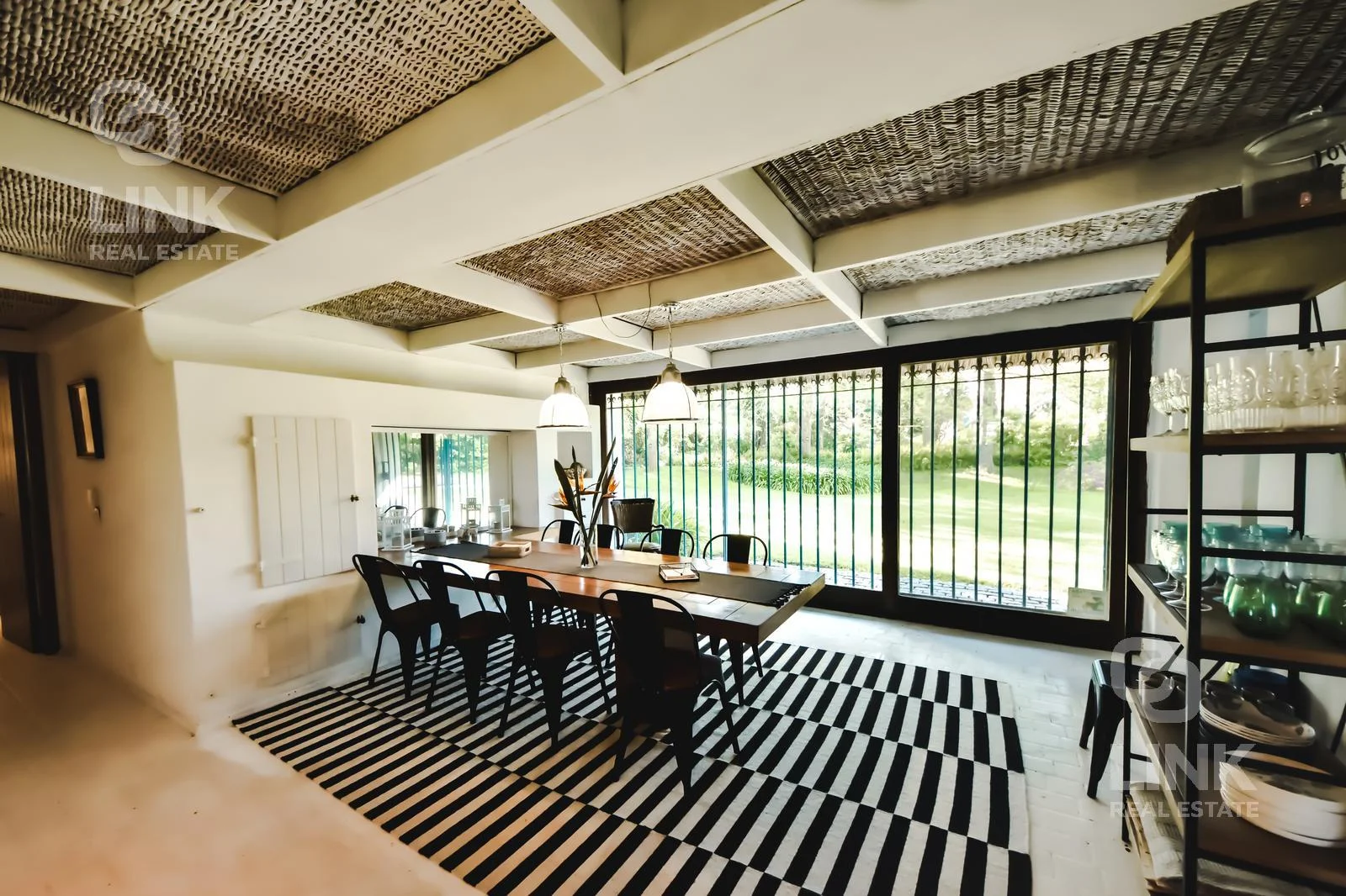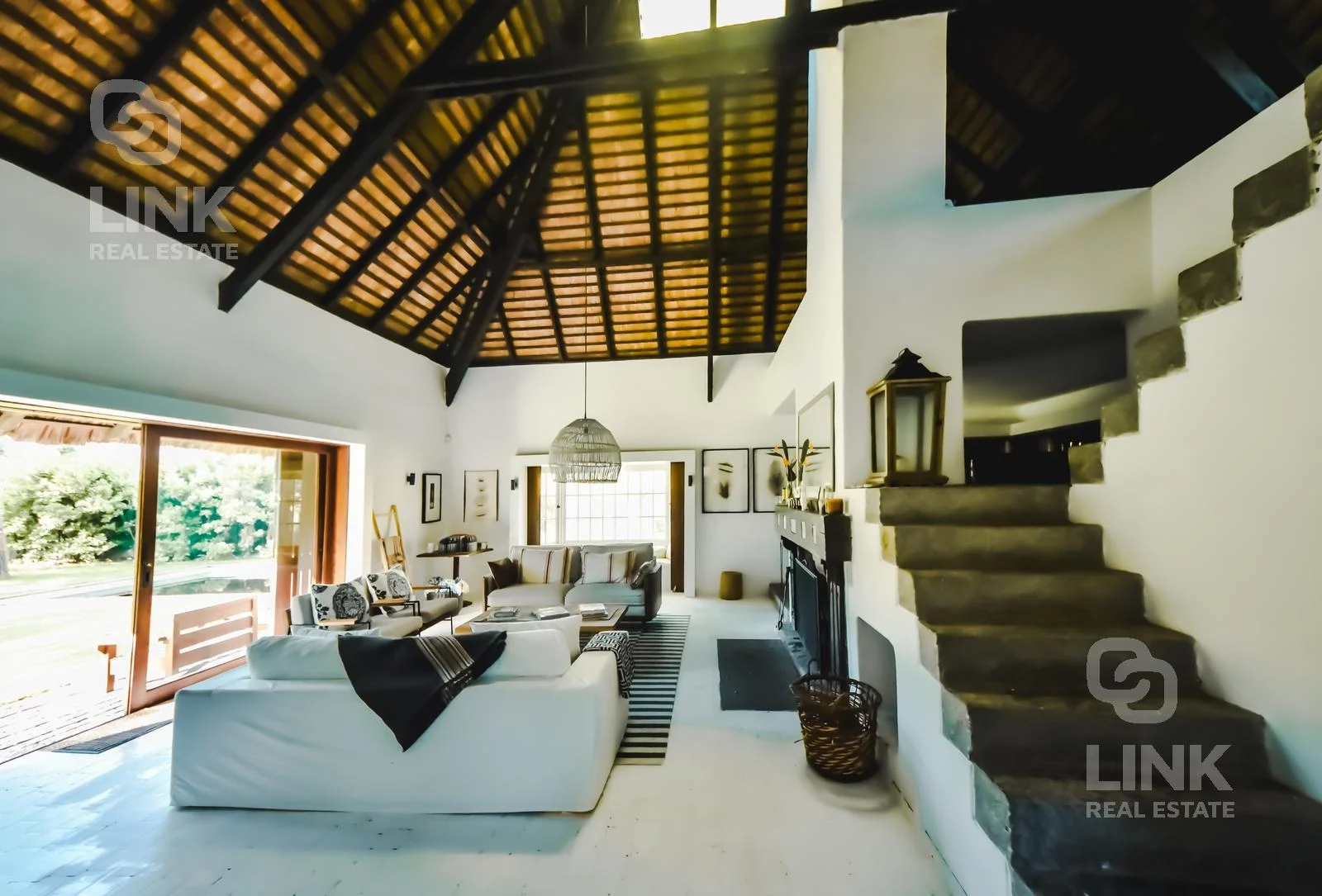 Emplazada en un extenso parque de 3.580 m², en un entorno natural rodeado de pinos y abundante vegetación a tan solo unas cuadras del mar. La residencia dispone de 4 dormitorios, 3 baños —2 en suite— y dependencia de servicio. Los ambientes son generosos en tamaño y luz natural; el living y el comedor se integran armoniosamente con el exterior, brindando vistas al verde desde todos los sectores. La cocina, amplia y funcional, cuenta con comedor diario y salida directa a una galería exterior.