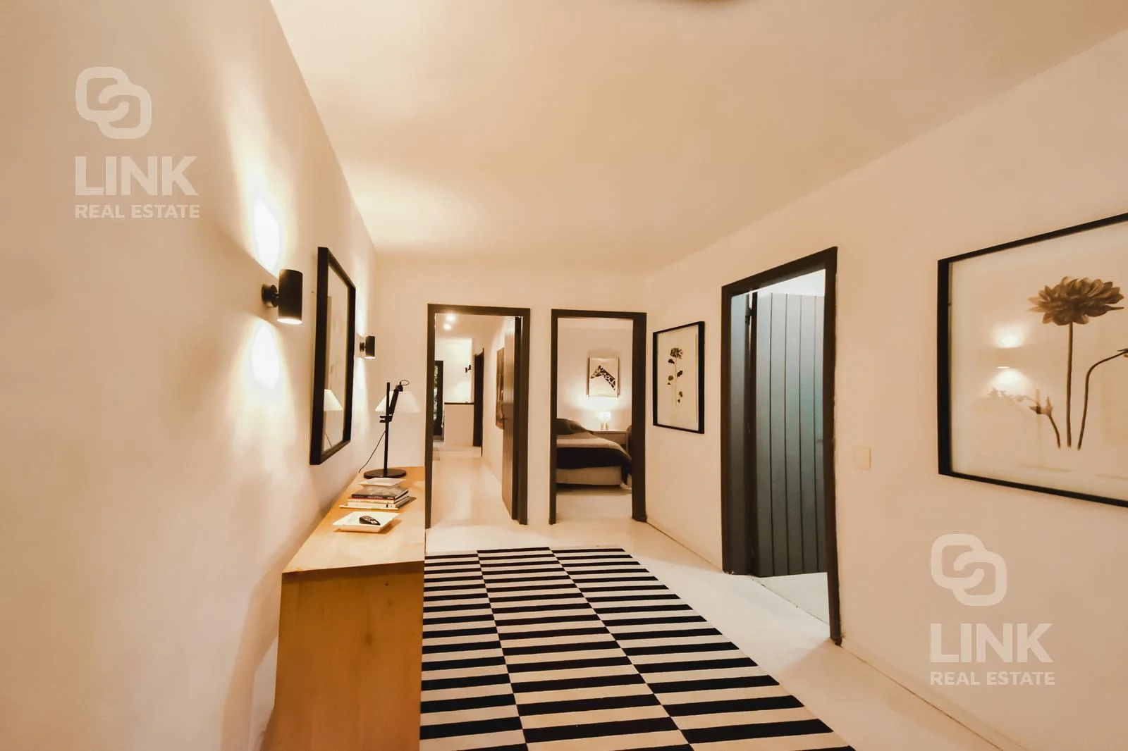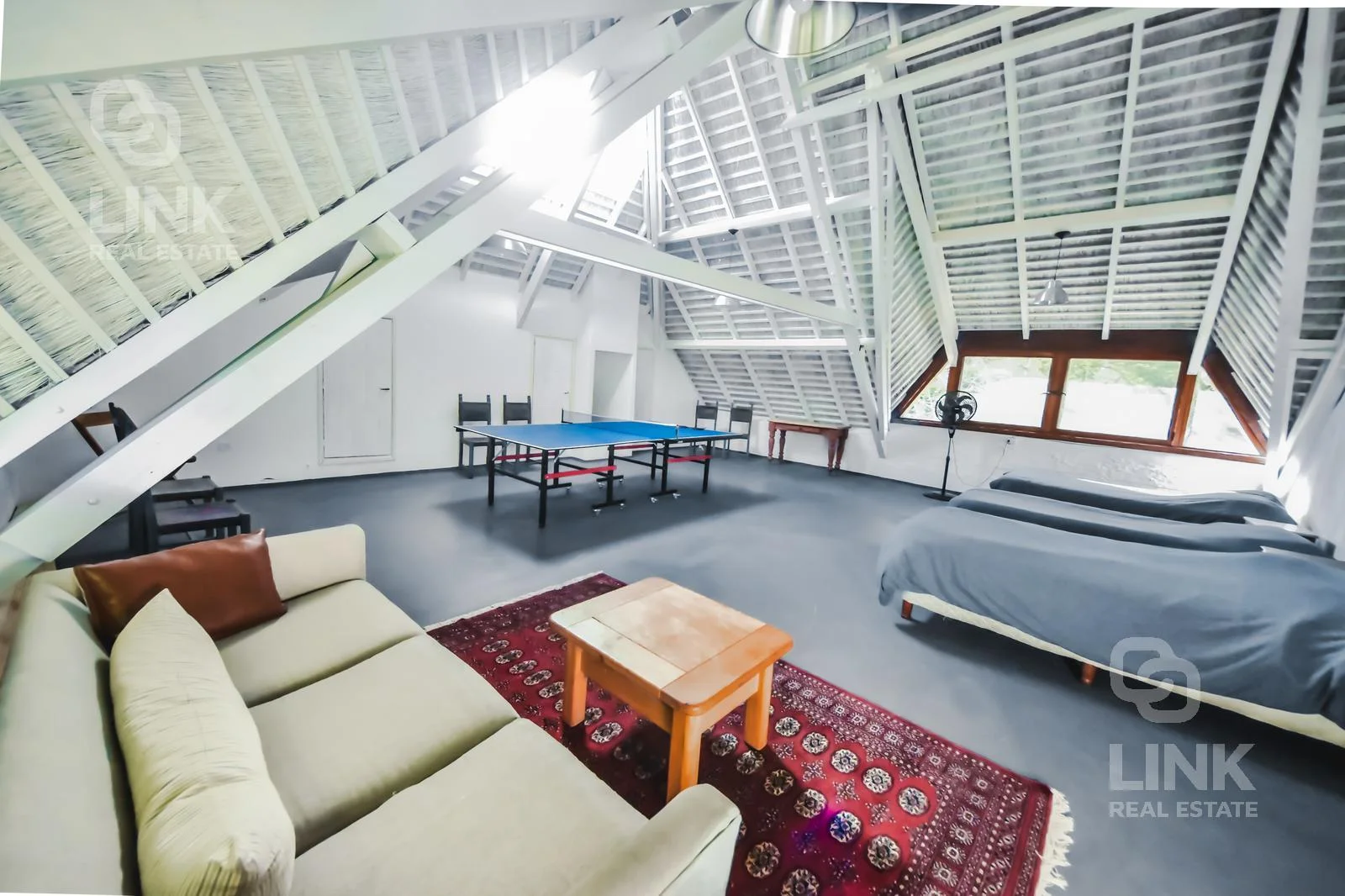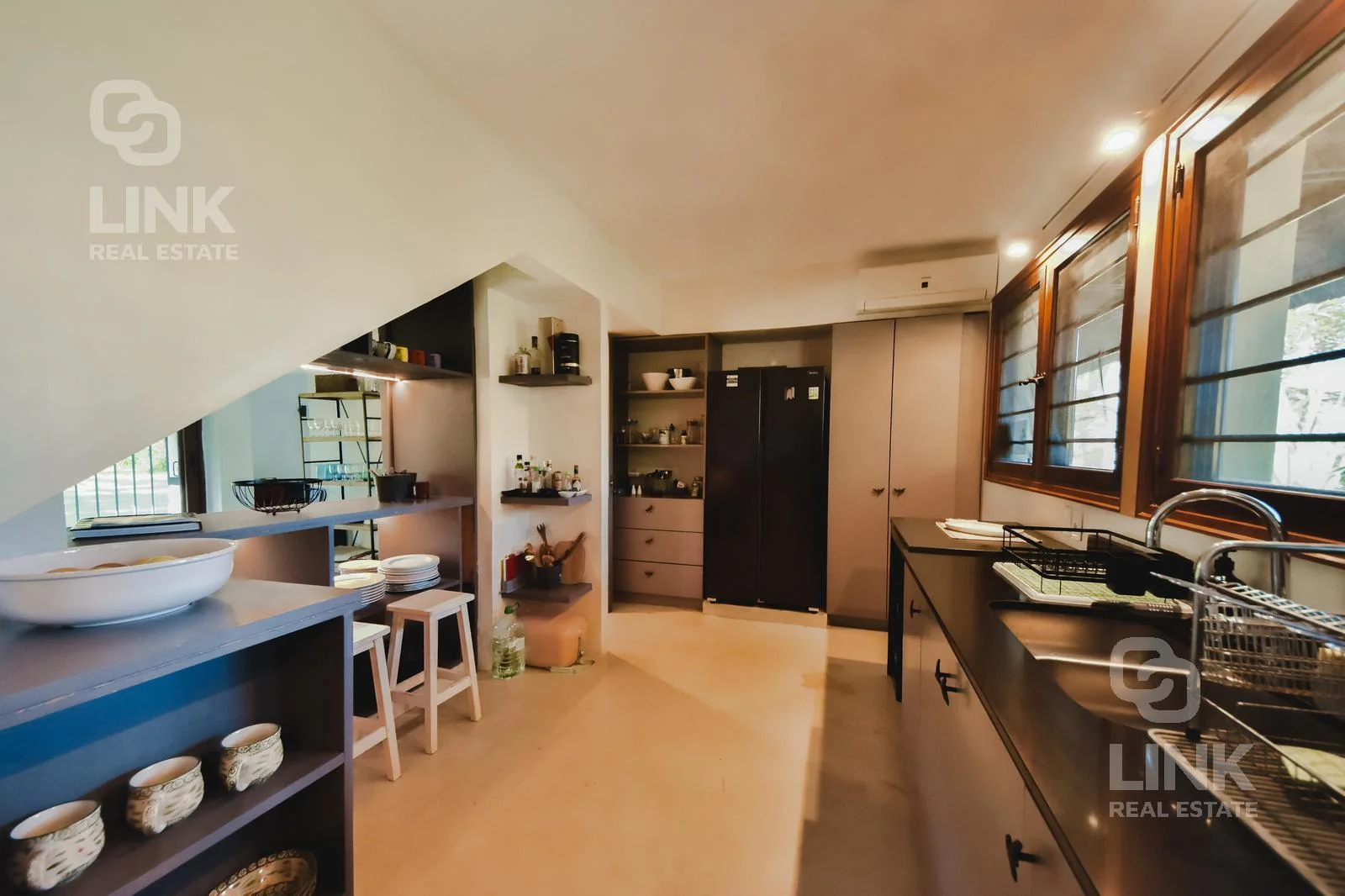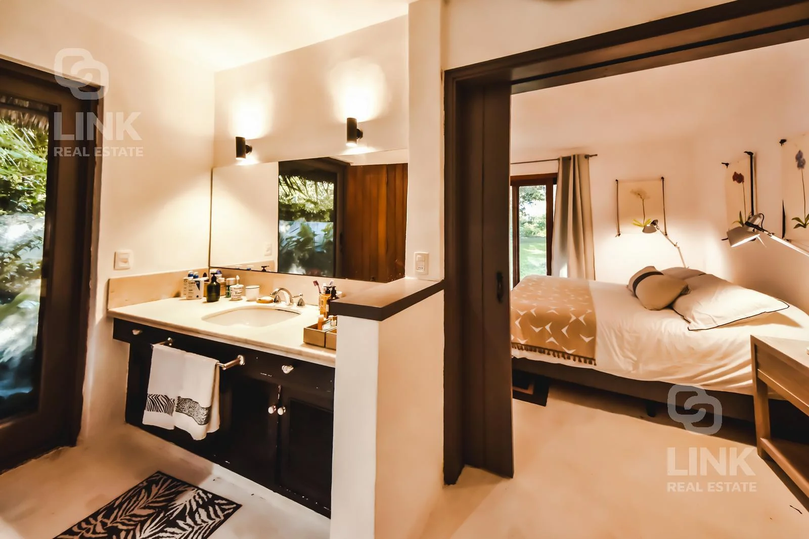Emplazada en un extenso parque de 3.580 m², en un entorno natural rodeado de pinos y abundante vegetación a tan solo unas cuadras del mar. La residencia dispone de 4 dormitorios, 3 baños —2 en suite— y dependencia de servicio. Los ambientes son generosos en tamaño y luz natural; el living y el comedor se integran armoniosamente con el exterior, brindando vistas al verde desde todos los sectores. La cocina, amplia y funcional, cuenta con comedor diario y salida directa a una galería exterior.