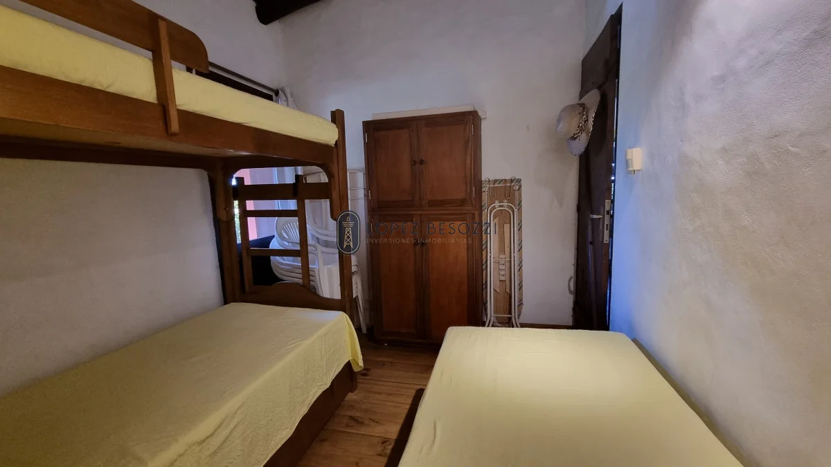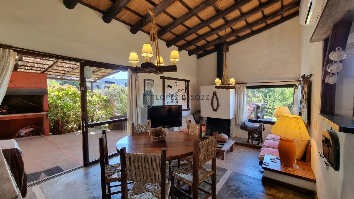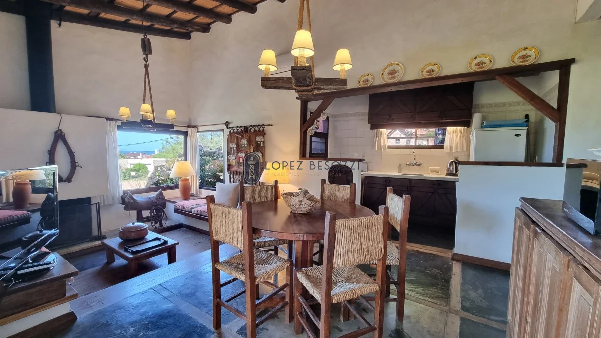 A menos de 150 metros de la playa en el corazón del balneario; propiedad de fácil mantenimiento y super alquilable distribuida en un solo nivel. La misma cuenta con amplio ambiente integrado contando con living-comedor y estufa a leña tradicional, cocina con barra; pasillo de distribución hacia los dos dormitorios, baño completo y toilette.