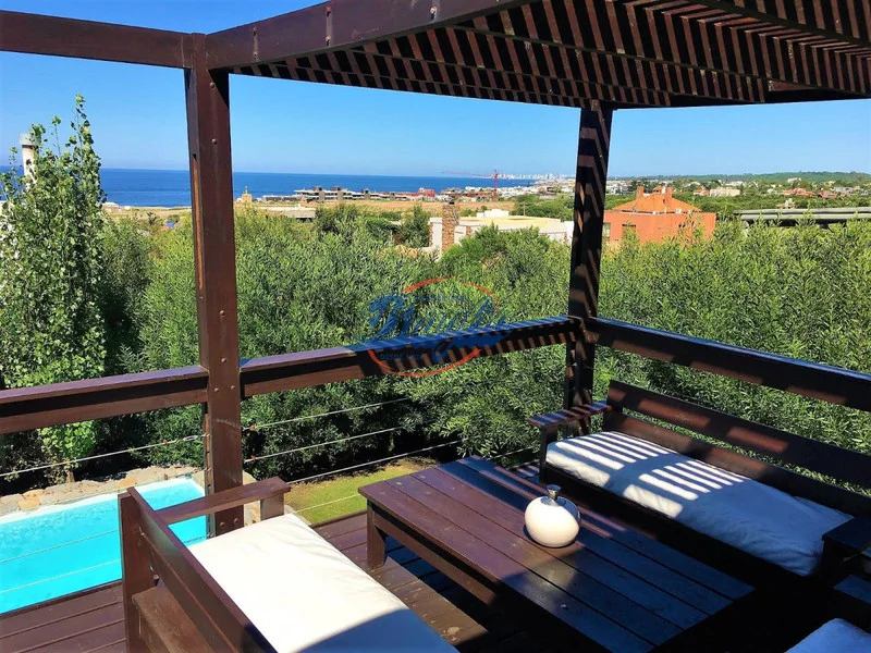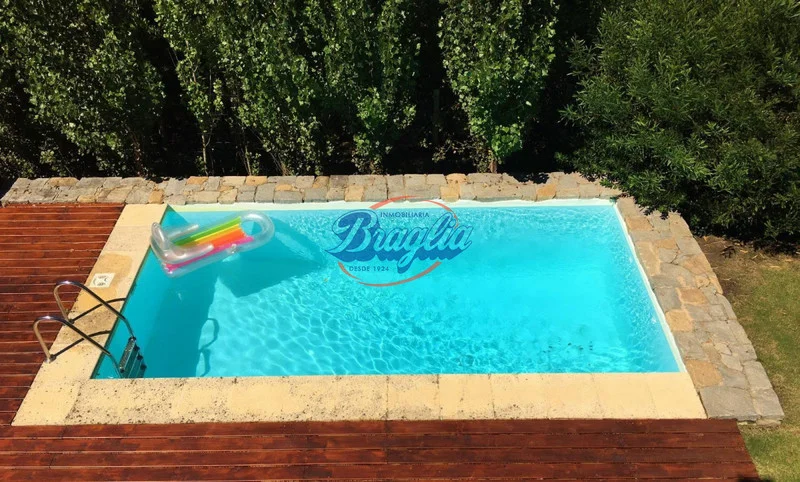 Esta gran casa cuenta con una piscina exterior, climatizada, una excelente terraza con gran vista, parrillero y cochera para 4 autos.