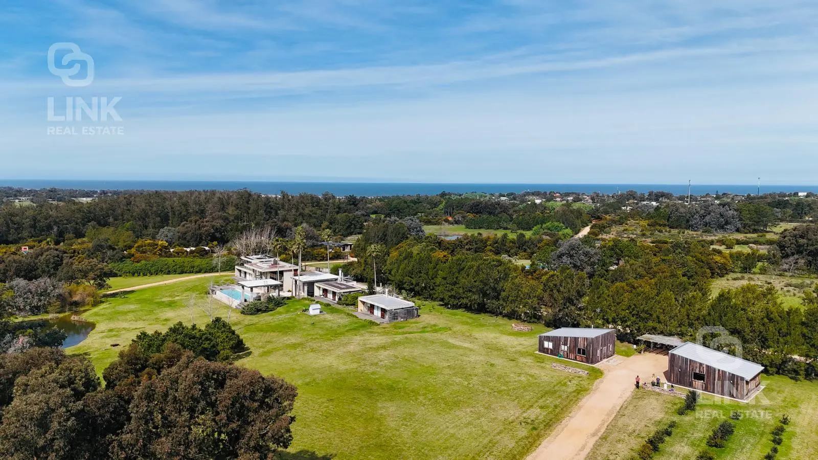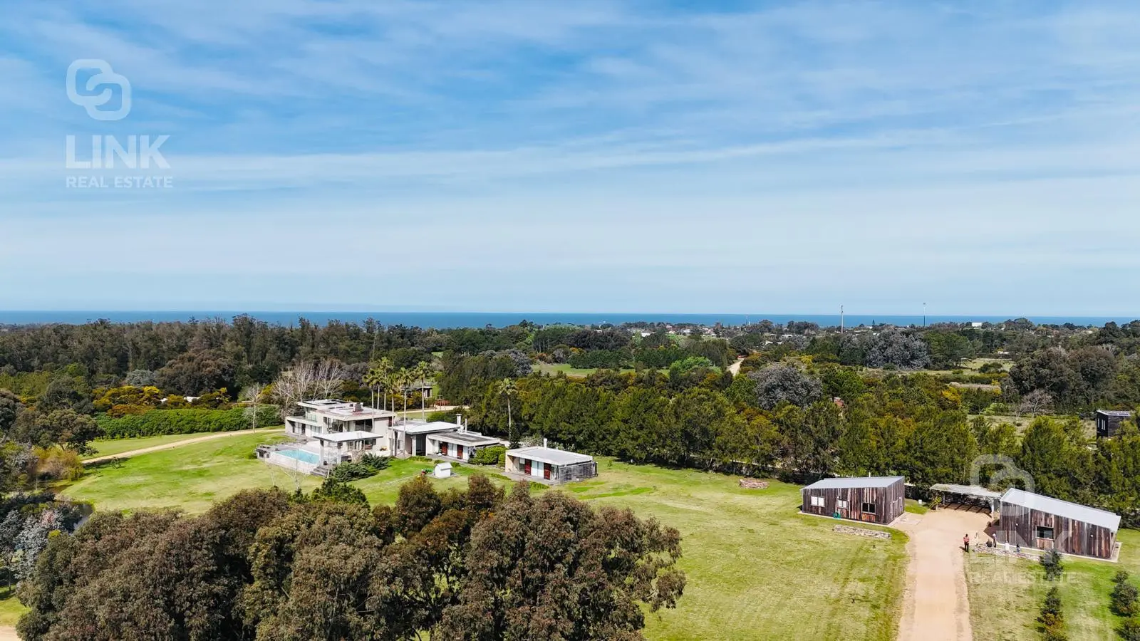 La propiedad además ofrece dos casas de huéspedes, cada una con dos dormitorios y dos baños, así como una casa de caseros y un galpón para vehículos, brindando funcionalidad y comodidad para la vida de todos los días.