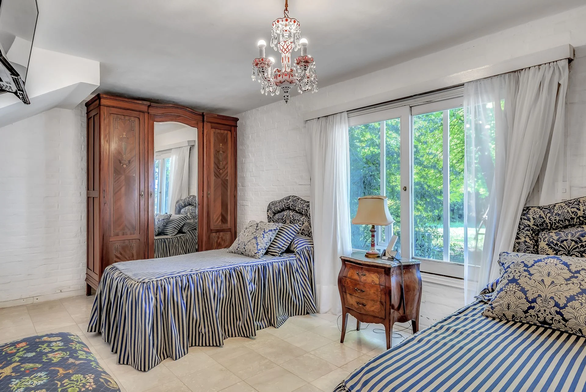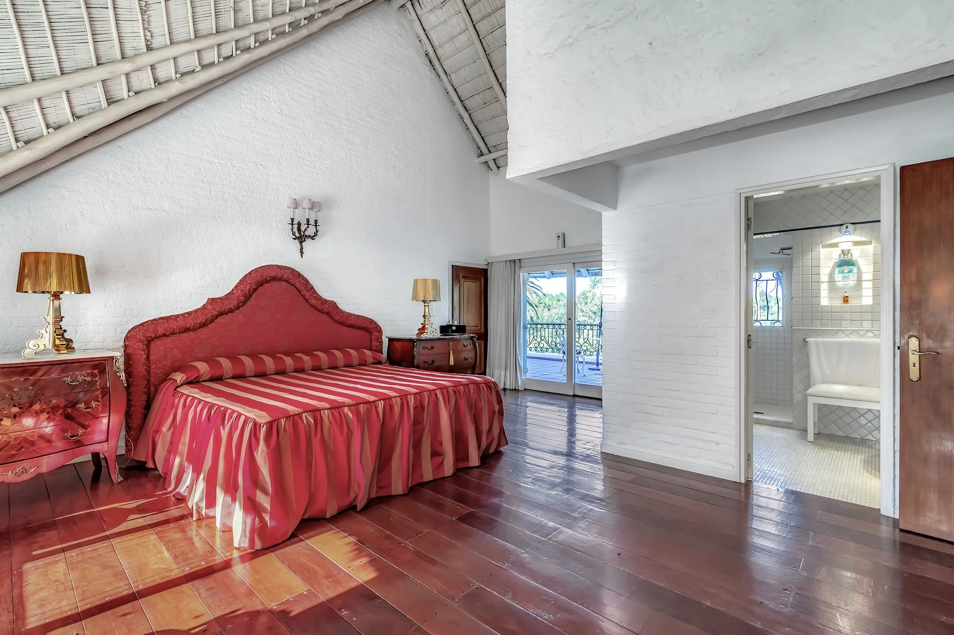 Esta excelente propiedad está formada por una Casa Principal de 700 mts construidos y se desarrolla en 2 plantas con pisos de mármol Botichino. Una central telefoníca comunica todos los ambientes, en los cuales tienen aparatos Bang Olufsen.