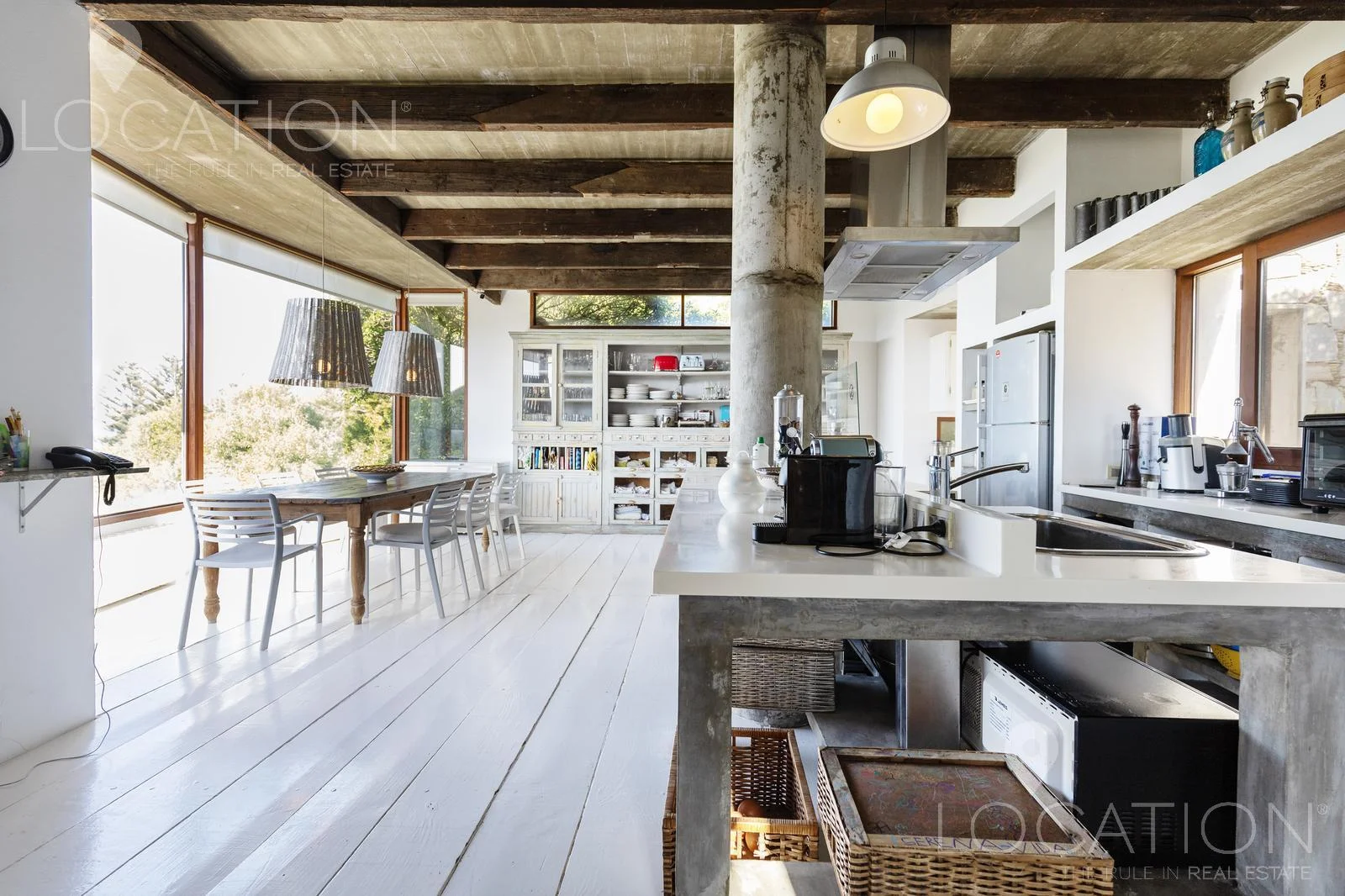 Su cocina definida también con comedor y estufa a leña perfecta de confort y practicidad sumado a la vista al mar amplísima.