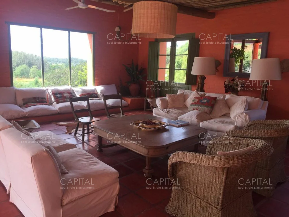 Divina casa de estilo colonial, en una zona muy tranquila, con muy lindas vistas y a 5 minutos de la playa. Cuenta con seis dormitorios en suite, amplias galerías exteriores, gran parrillero con living y comedor techado y piscina. Planta Baja: Hall de acceso a gran patio central con lindísimas galerías, importante parrillero y piscina. Buena recepción con gran estufa a leña, con salida a terraza, parque al frente y galerías. Amplia cocina bien equipada Cinco dormitorios, todos en suite y con salidas independientes a galerías y piscina. Todos los ambientes con lindas vistas. Planta Alta: Amplia suite principal en dos ambientes, con salida a terraza y balcón. Cuenta con casa de caseros con dos dormitorios y dos baños, oficina y depósito. Por mas información consulte con nuestros asesores. Capital Real Estate Referencia Interna : Tera-30197