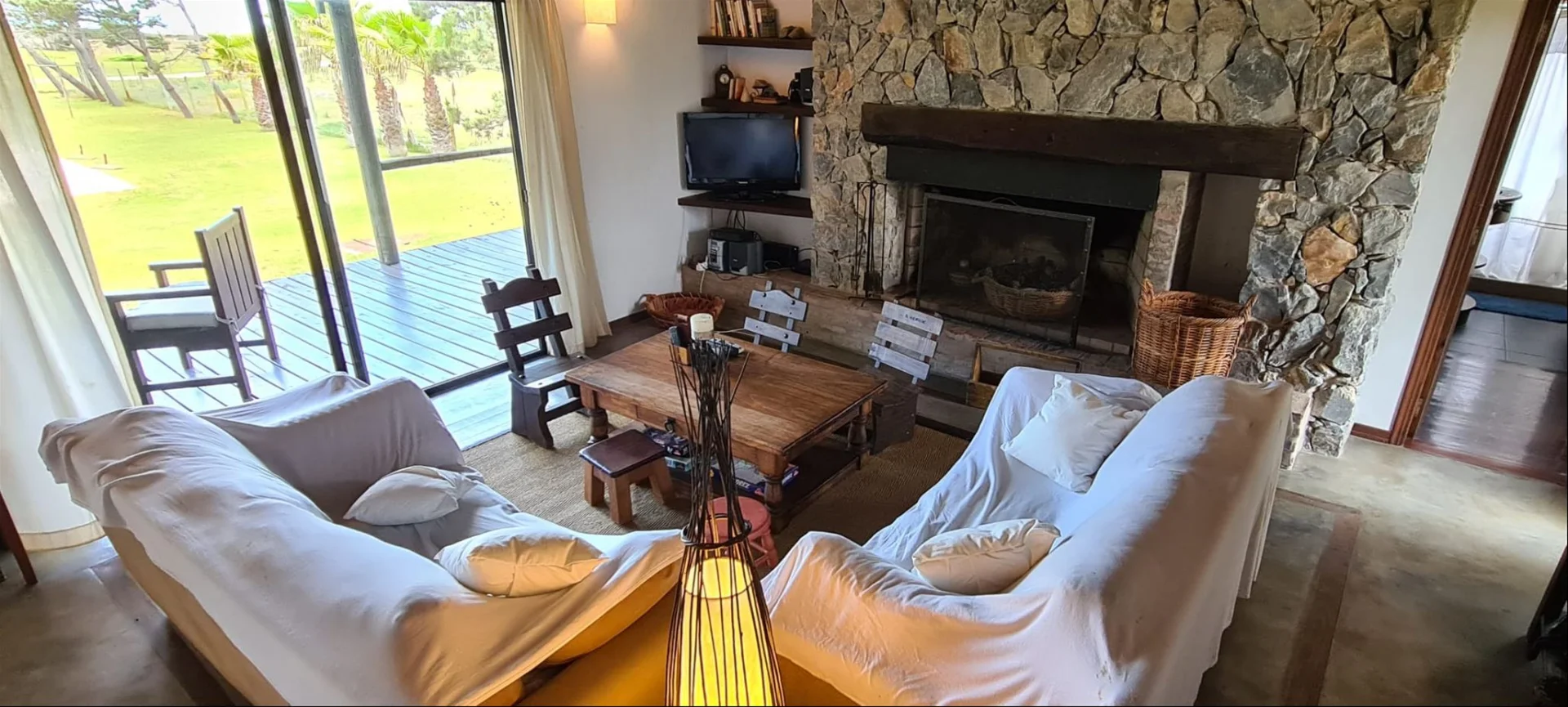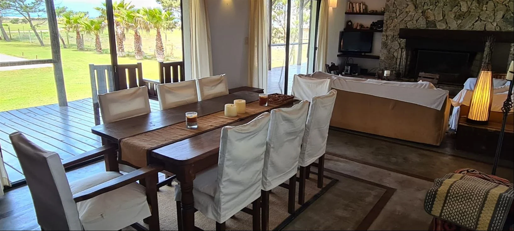 Planta baja: de 130m2: Living con gran estufa a leña, con TV con direct tv. Cocina integrada, equipada completa, dividida con una barra y banquetas. Saliendo por los ventanales del living comedor tenemos 80 m2 de deck con galería techada donde se encuentra el parrillero. Además en planta baja tenemos 2 dormitorios, AA, TV con Direct tv, con placares amplios, uno de ellos con cama doble que se pueden separar a 2 camas singles.