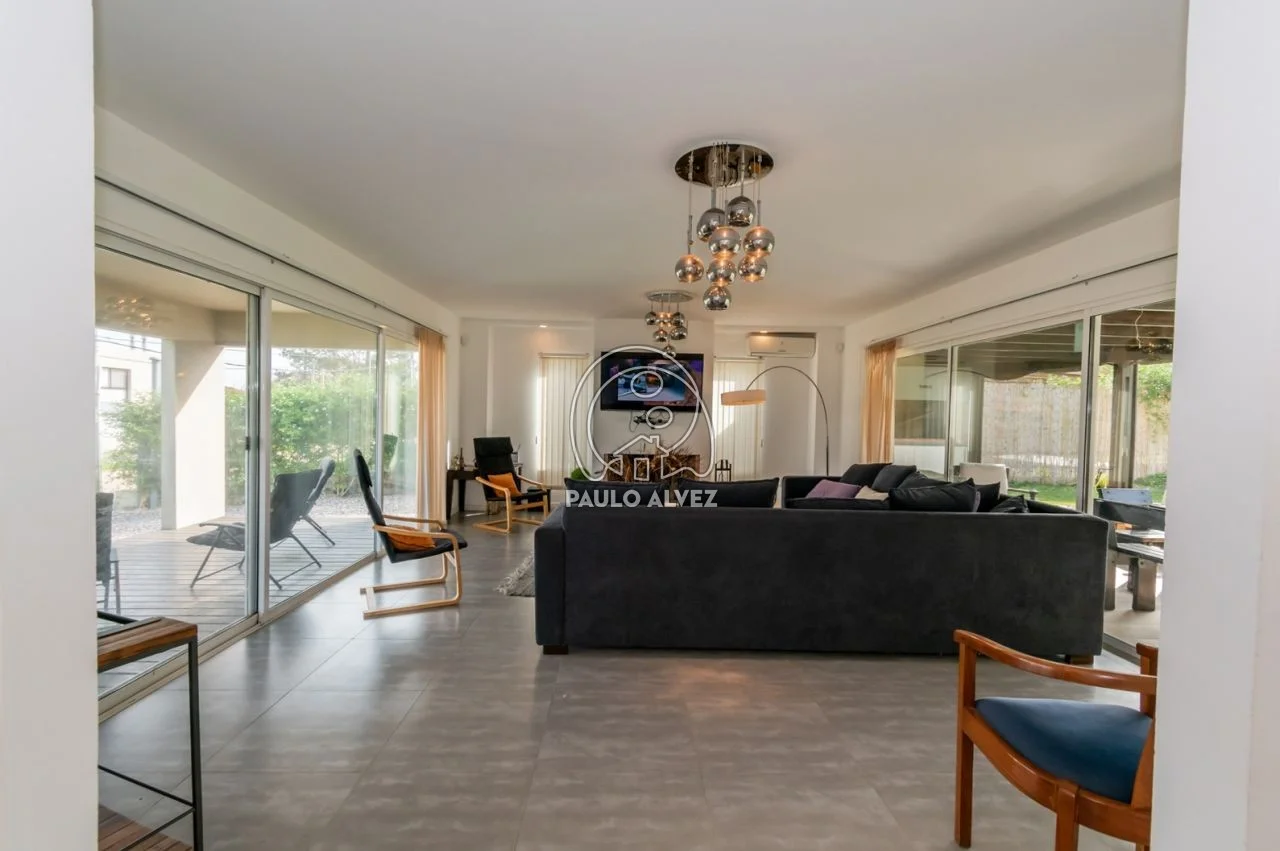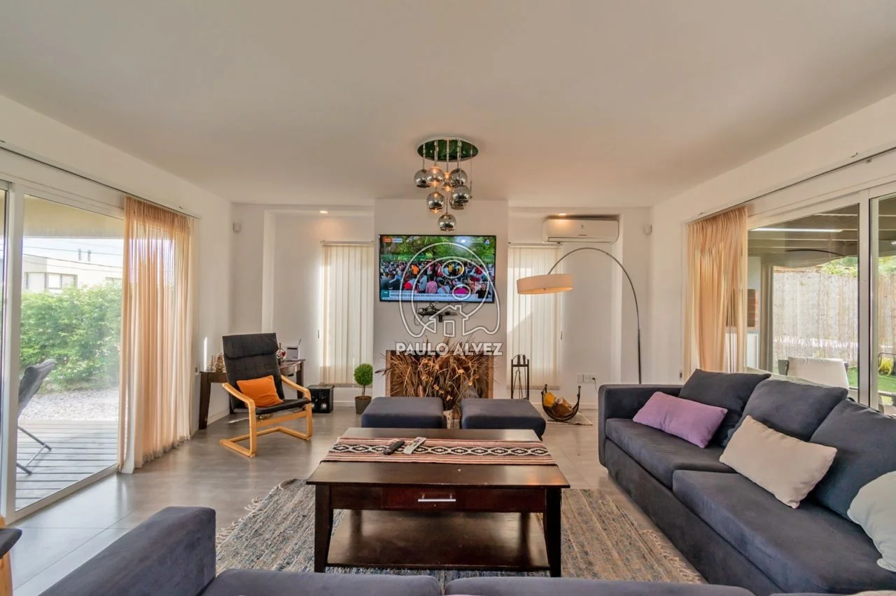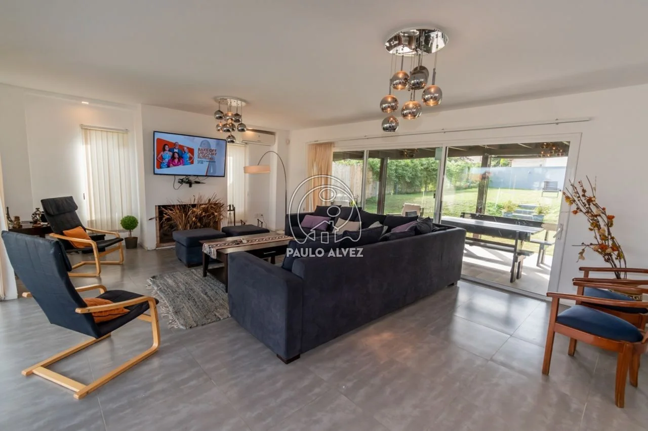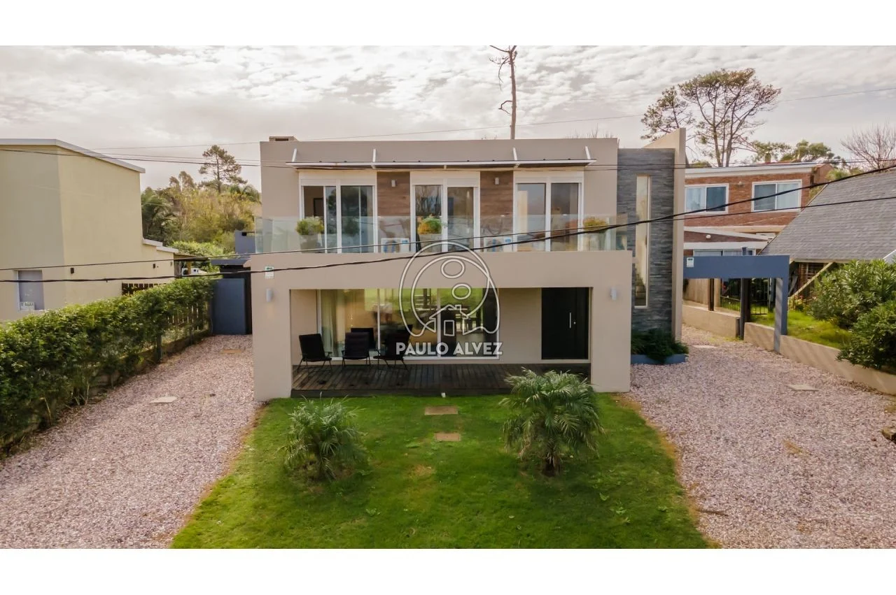 A menos de 100 metros del mar en balneario San Francisco, en una de las bajadas más solicitadas y tranquilas debido a sus características familiares. Sólida y nueva construcción de estilo minimalista del año 2015 emplazada en una superficie total de 569 m² con orientación Suroeste, 130 m² edificados en dos plantas. Planta baja comprende amplio living comedor al frente con estufa a leña , aire acondicionado, tv led, cómodo sofá en L y excelente luz natural, baño social, cocina funcional totalmente equipada con comedor integrado. Acceso a Planta Alta mediante escalera con pasamanos, dos dormitorios matrimoniales con aire acondicionado y tv led y uno con dos camas simples, todos ellos con acceso al balcón con vista al mar por puerta ventana y cortinas de enrrollar, y baño completo con ducha escocesa. Fondo con parrillero cubierto en deck, cochera y muro perimetral. Aberturas en aluminio con mosquiteros. Para su seguridad la propiedad cuenta con servicio de alarma y DirecTv. Por más información contáctenos.