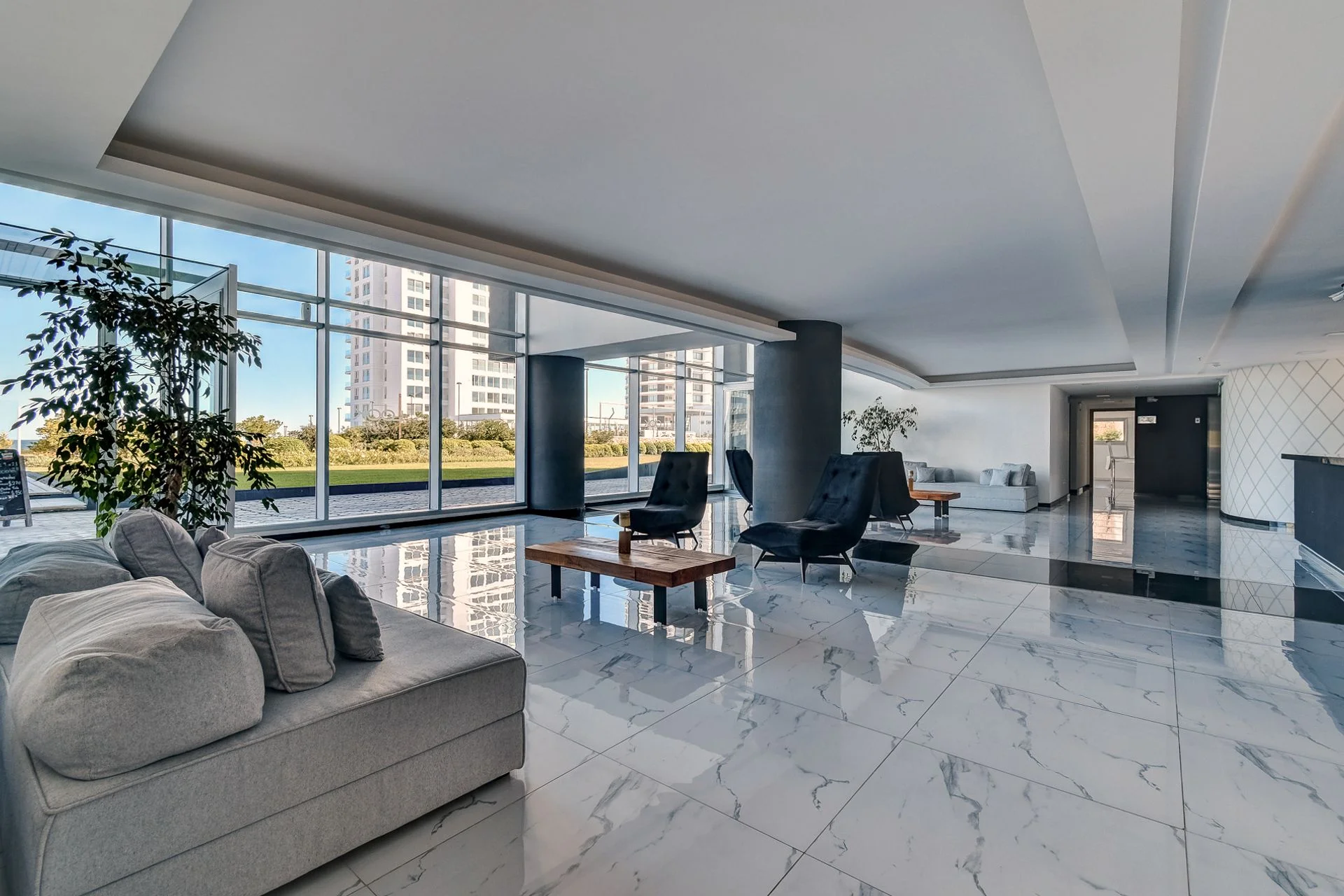 Planta baja interior: acceso con patios ingleses, espejos de agua, livings y lounge, bar confitería con expansiones, barbacoas, Kids Club, amplios salones para eventos.