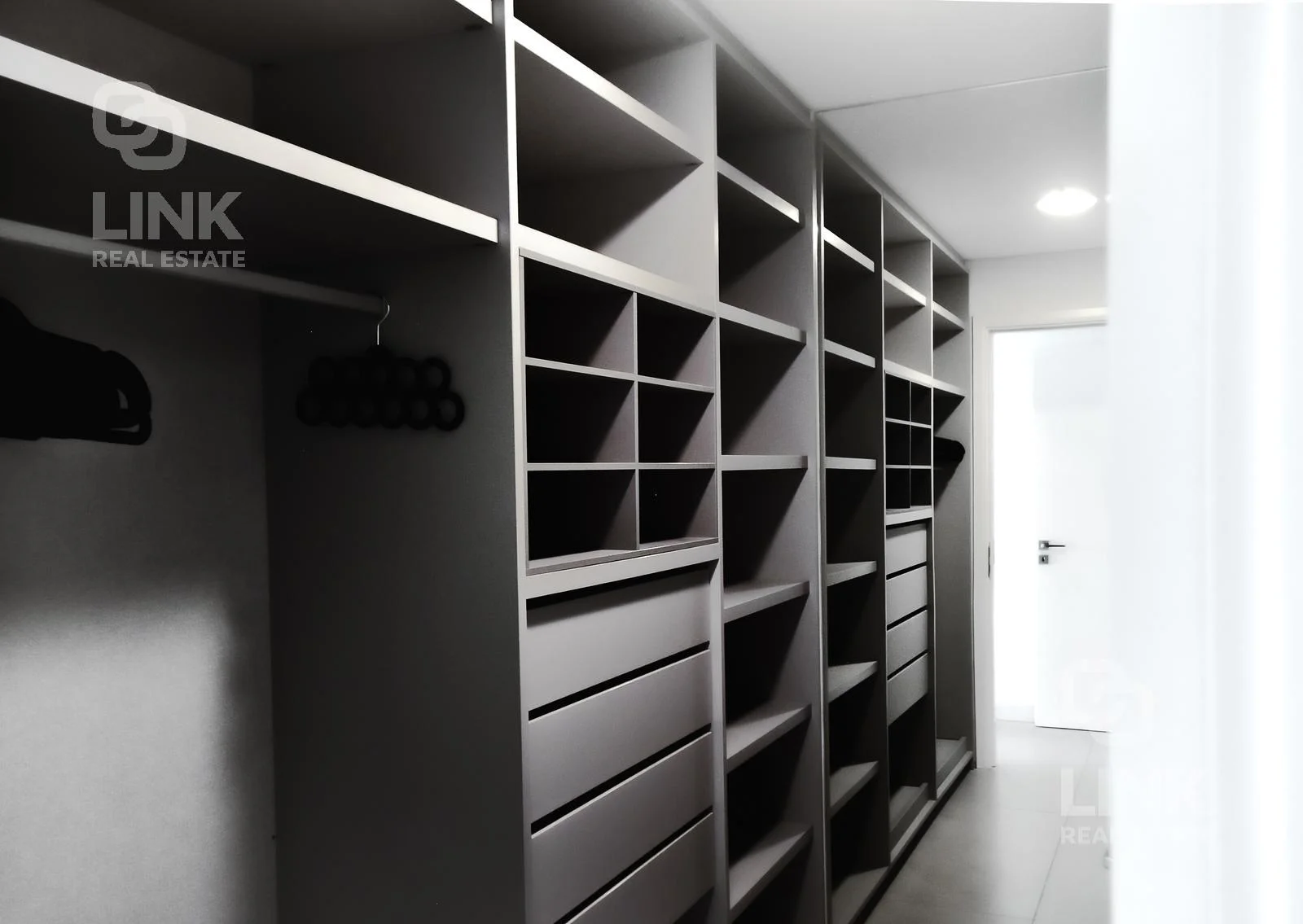 La propiedad cuenta con tres suites principales, cada una con generoso espacio de almacenamiento. La suite principal destaca por su vestidor y un baño en suite con doble bacha y bañera, además de ofrecer vista al mar. Adicionalmente, hay un dormitorio de dependencia en suite que puede funcionar como habitación.