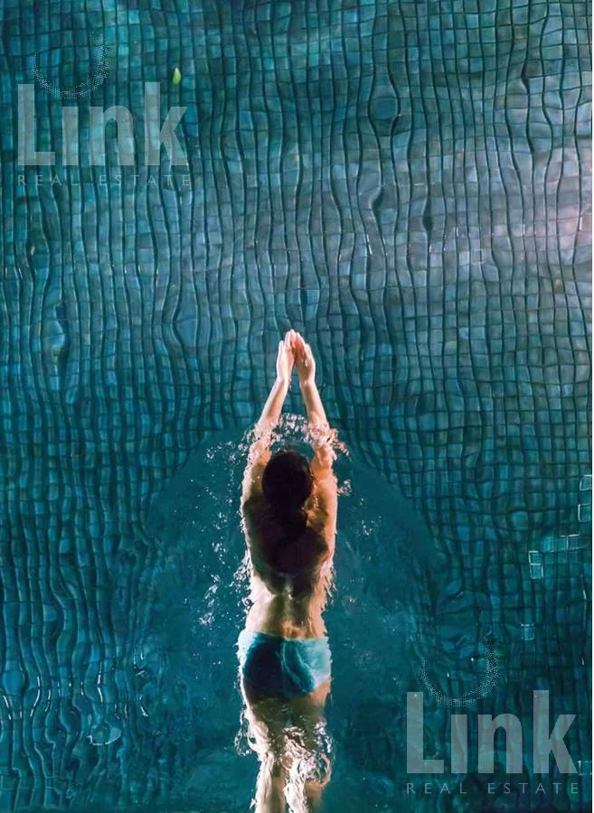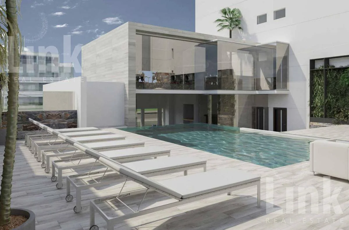 Terraza Exterior con un espejo de agua propio y jacuzzi, ofreciendo un espacio exclusivo para relajarse y disfrutar.