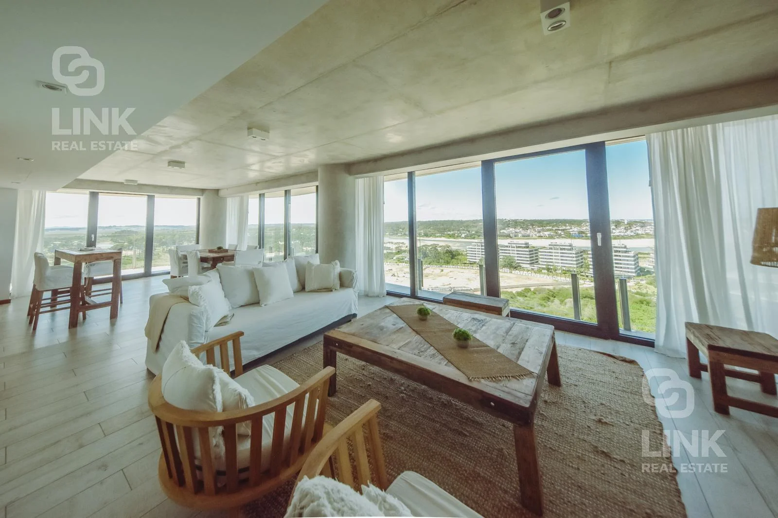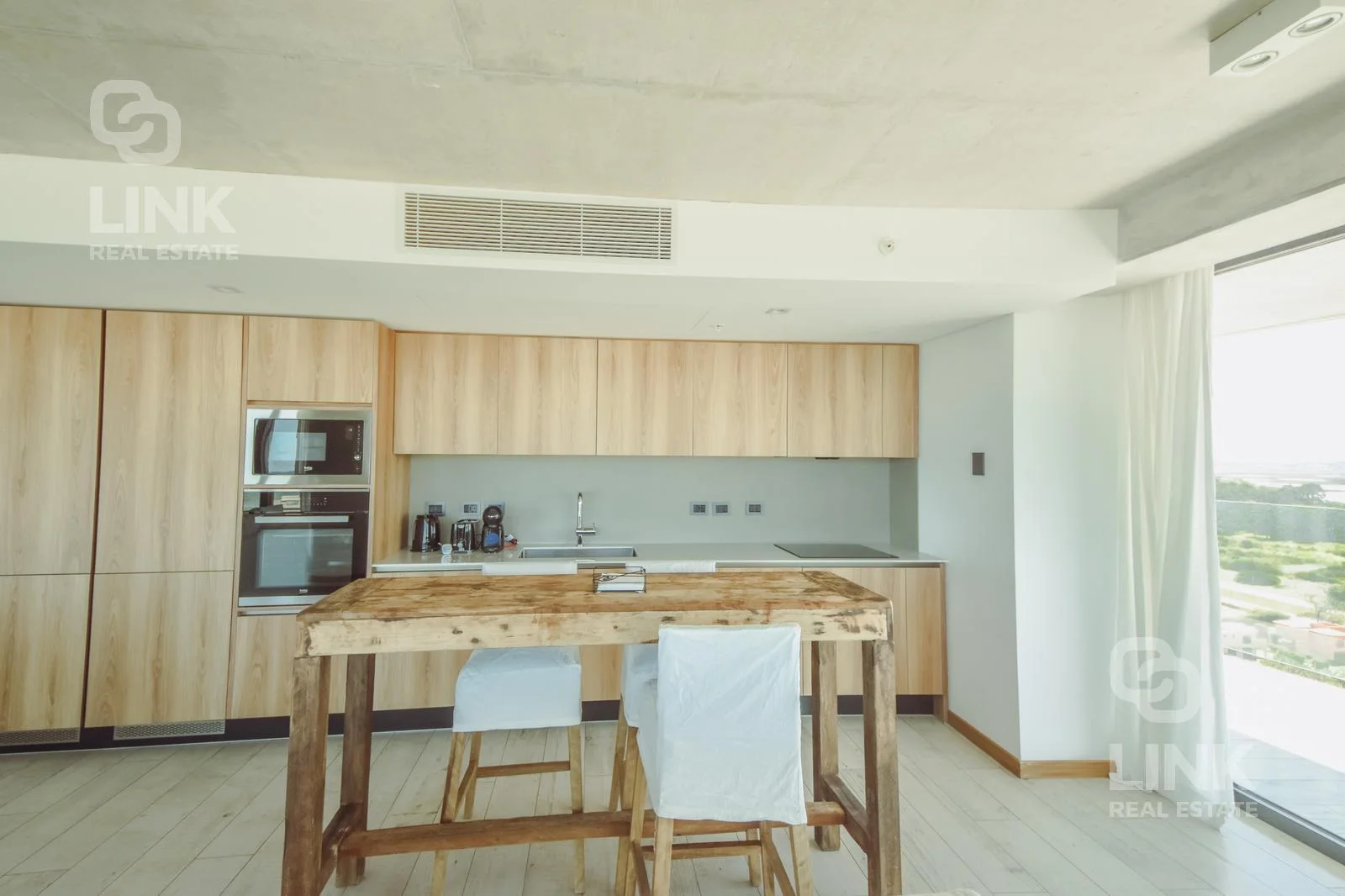 Piso alto, decorado con estilo moderno y totalmente equipado. Amplio living comedor con cocina integrada de diseño contemporáneo y funcional, y terrazas panorámicas que conectan interior y exterior, ofreciendo una experiencia única de confort y amplitud.