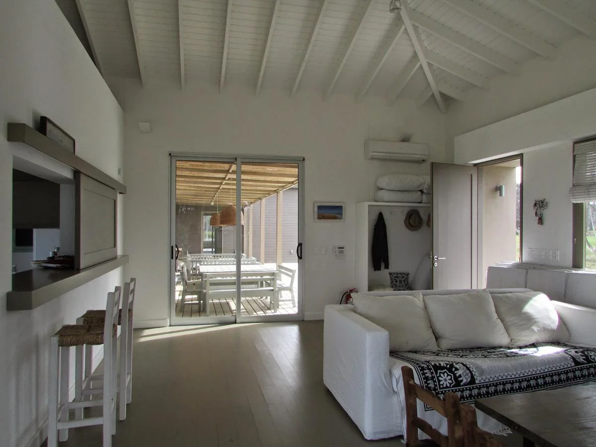 Hermosa propiedad en Pinar del Faro, barrio cerrado con seguridad, canchas de tenis, club house, gym, spa, etc. en José Ignacio. La casa está distribuída en dos bloques y en una planta. El primero cuenta con un amplio y luminoso living comedor con estufa a leña, aire acondicionado, tv plasma, internet wi-fi. Cocina está completamente equipada. Afuera se encuentra un gran deck con estar, hogar y parrillero, ideal para disfrutar al aire libre; además del jardín con piscina y ducha exterior. En la segunda parte se encuentran los tres dormitorios en suite, todos equipados con aire acondicionado y ventiladores de techo. La espaciosa master suite, cuenta con cama king size, tv plasma, amplio vestidor, y un deck con vista al mar. Los otros dos dormitorios cuentan con dos camas cada uno. Con acceso independiente, encontramos la dependencia de servicio con una cama y baño propio, y el lavadero. Ideal para disfrutar de unas espectaculares vacaciones en familia en un entorno natural con todo el
