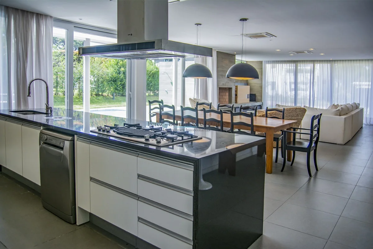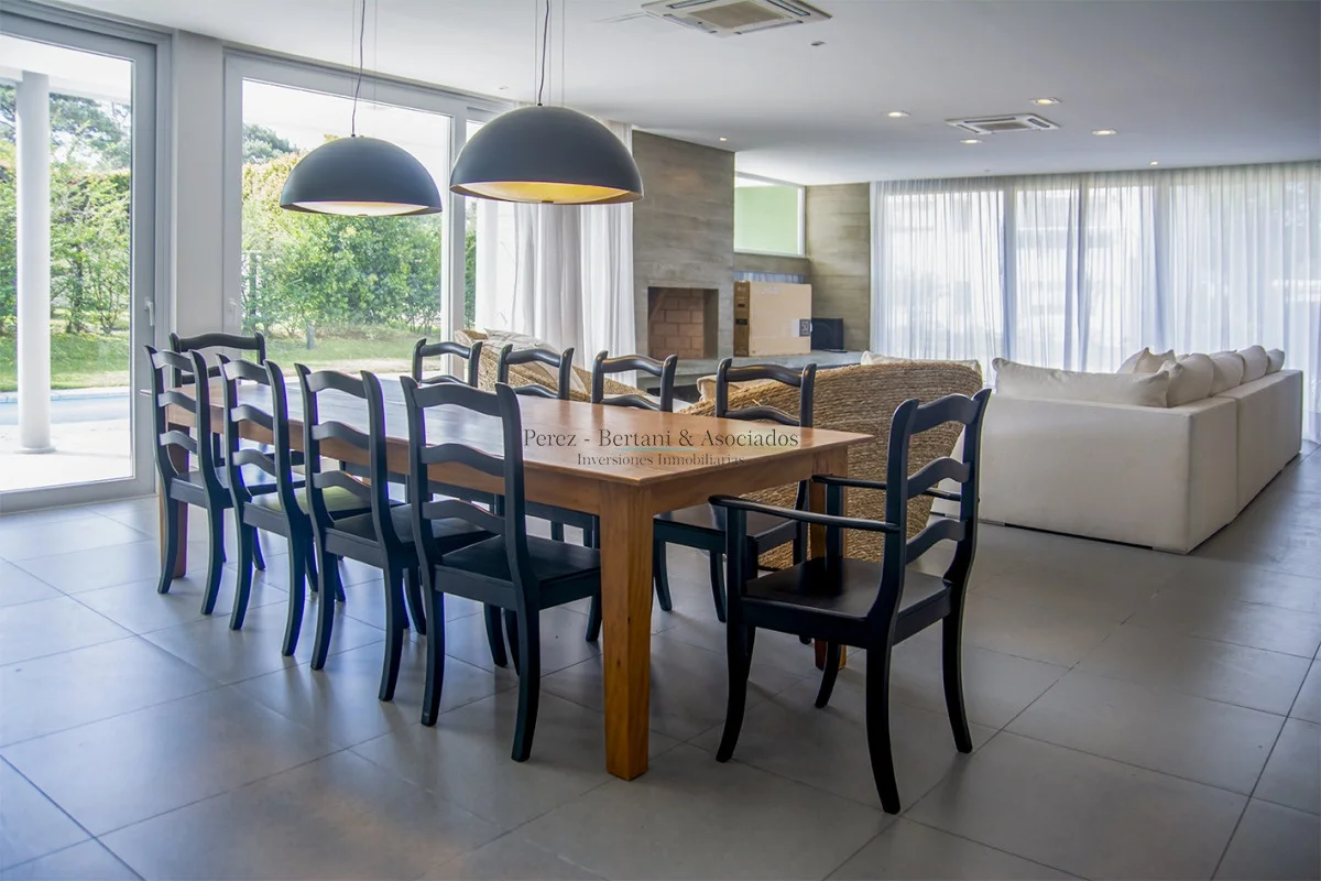 Esta casa en la Mansa, Punta del Este, ofrece una experiencia de alojamiento amplia y lujosa a tan solo 400 metros del mar. Con 5 dormitorios y 5 baños, todos en suite, la propiedad tiene capacidad para alojar a 10 personas con un total de 5 camas, proporcionando un espacio espacioso y cómodo, con una cocina de tipo americana que está equipada con anafe, microondas, lavavajilla, heladera con freezer y horno. El área de living comedor brinda un espacio abierto y acogedor para la convivencia teniendo en cuenta que incluye aire acondicionado y TV,