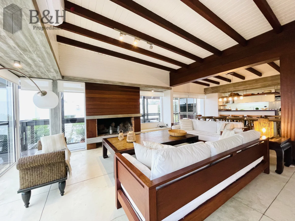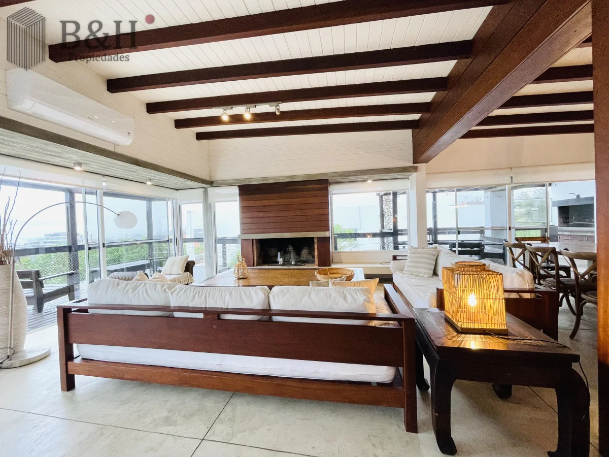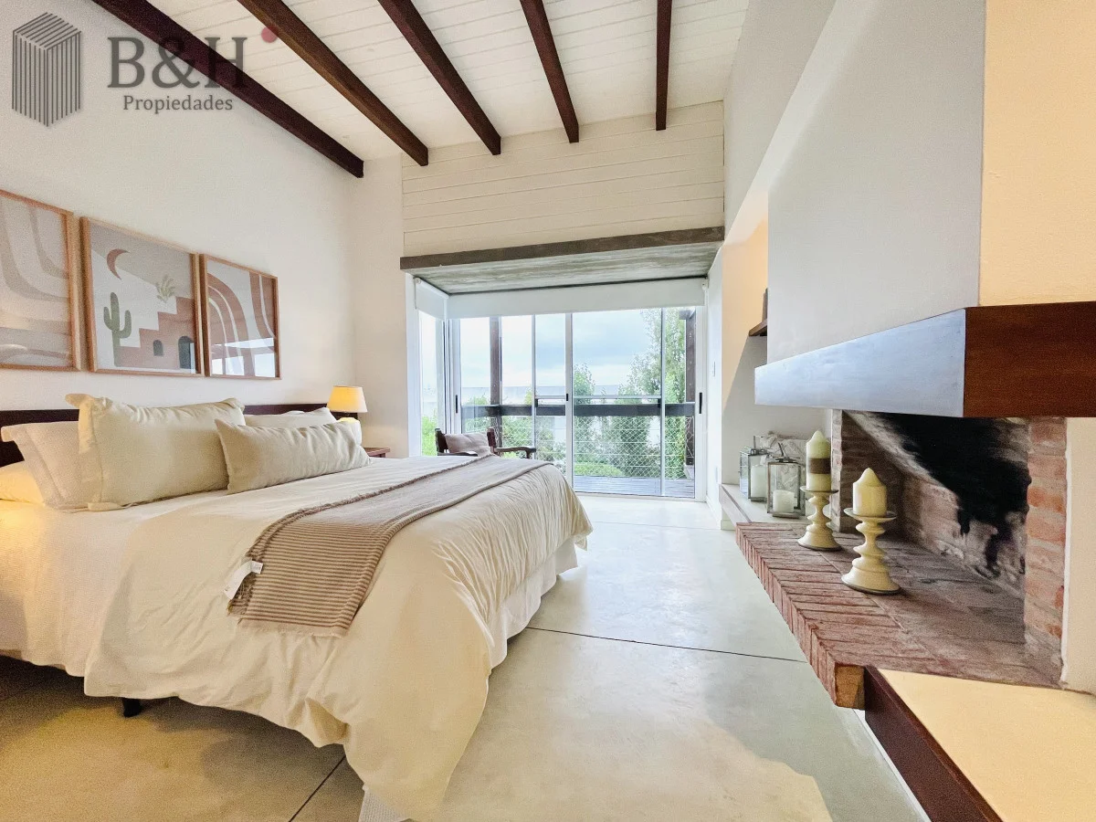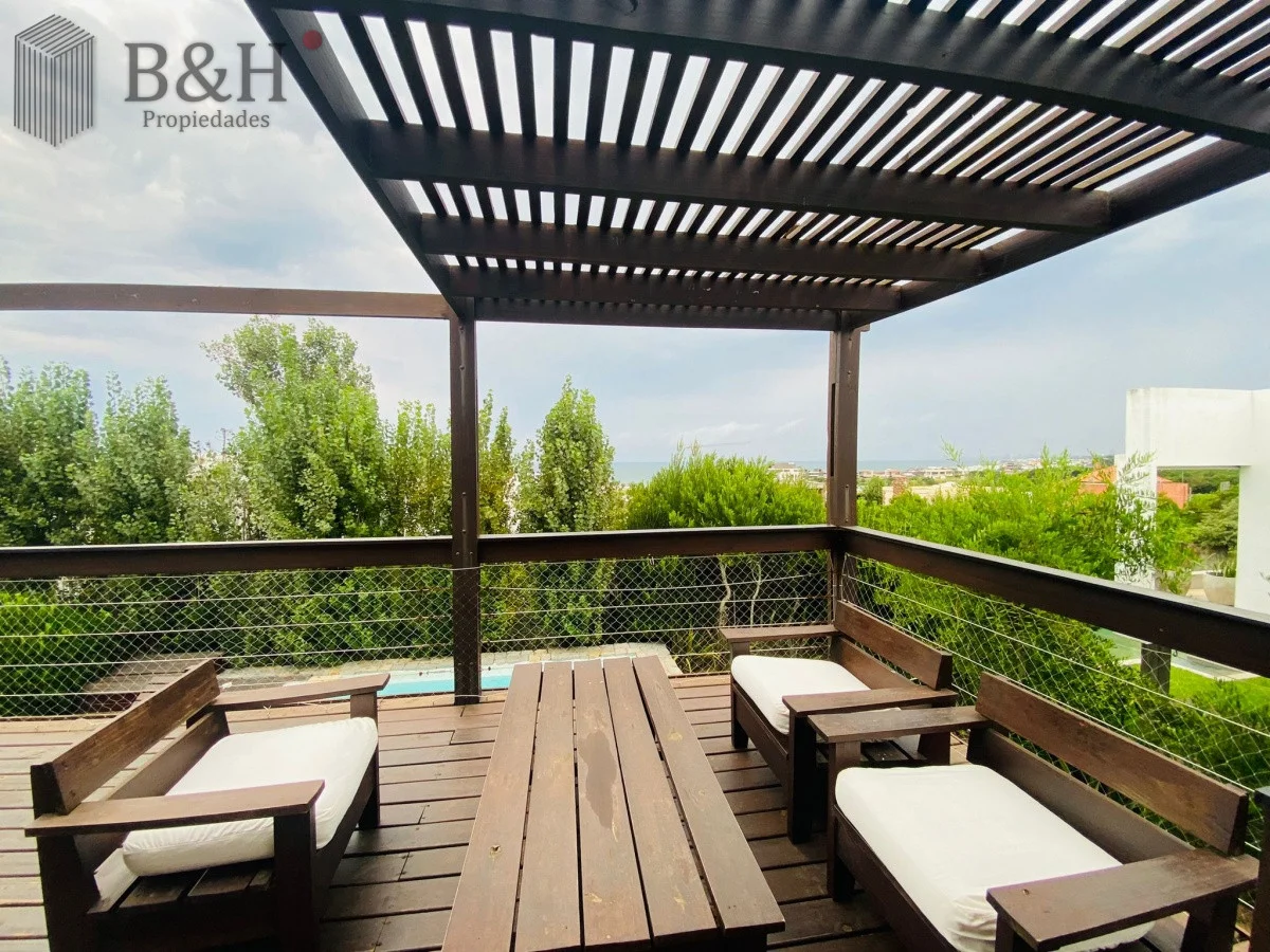 Dispone de amplio living comedor con excelente vista hacia el mar, estufa a leña, y salida al deck que rodea toda la planta alta; donde está ubicado el parrillero y estar exterior. Cocina bien equipada. Cinco cómodos dormitorios, dos de ellos en suite, más dependencia de servicio con baño (capacidad para 11 plazas en confortables sommiers).