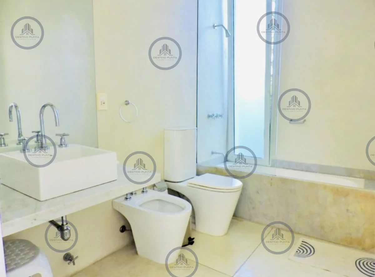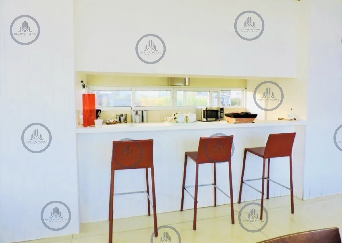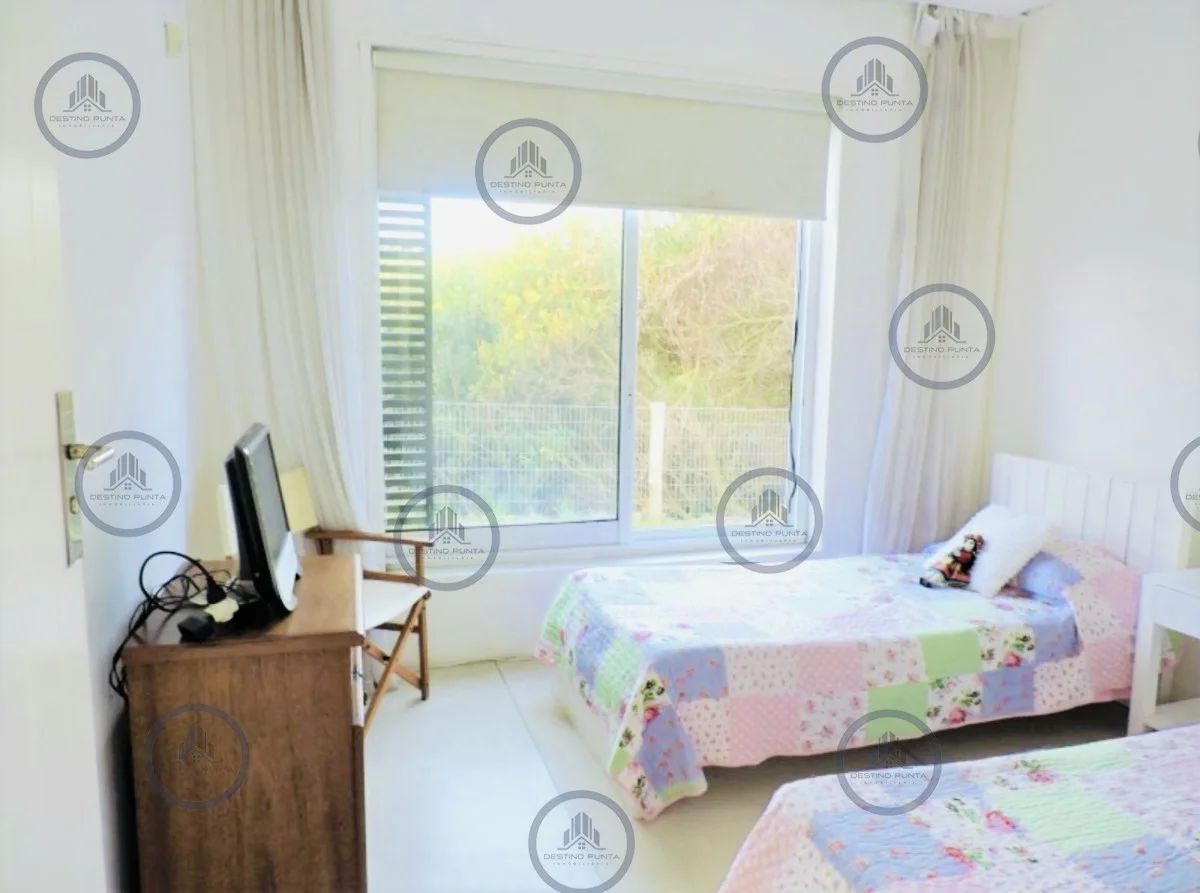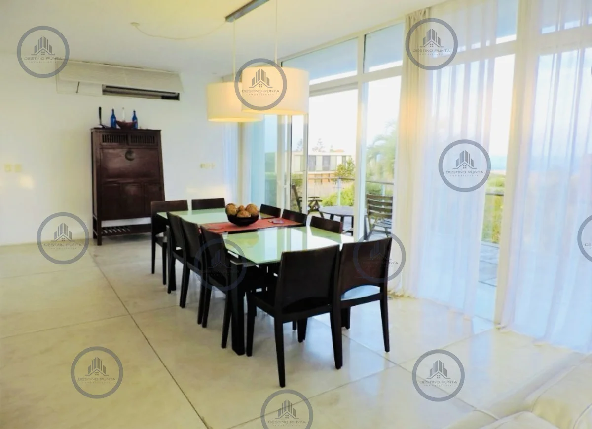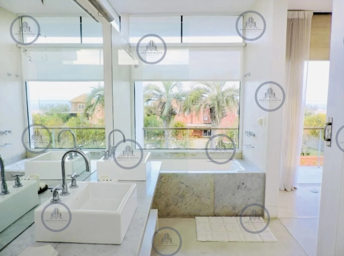 Planta baja Playroom con parrillero y comedor, galería con salida a jardín con deck y piscina climatizada con panel solar y bomba de calor, toilette, 2 dormitorios que comparten baño y dependencia de servicio con entrada externa y baño. Planta alta living comedor con estufa a leña y salida a balcón terraza con vista al mar, cocina con pasaplatos y suite principal con vista al mar e hidromasaje.