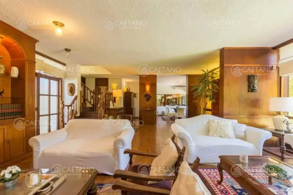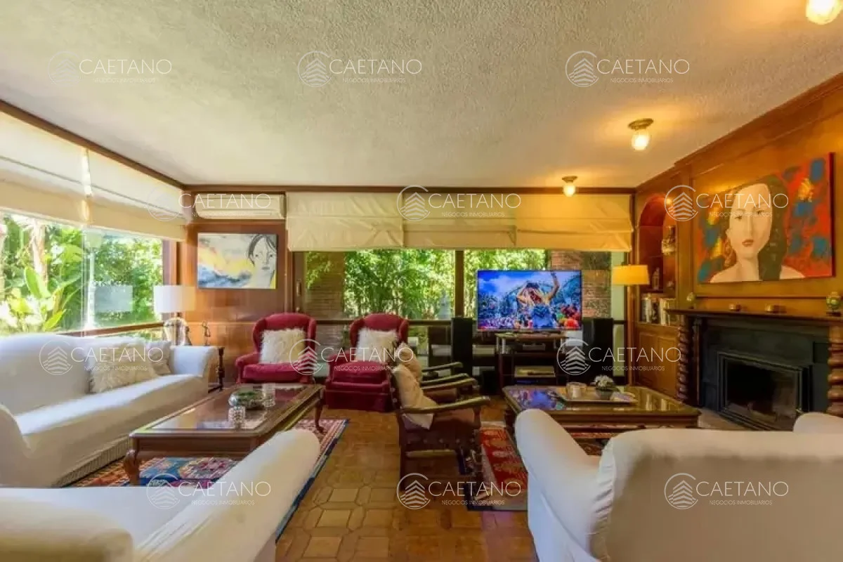 Compuesto por amplio y luminoso living comedor con estufa a leña, cocina completa, comedor diario, cinco dormitorios, cuatro baños (uno suite), dependencia de servicio con baño, gran parrillero, y una fabulosa piscina.